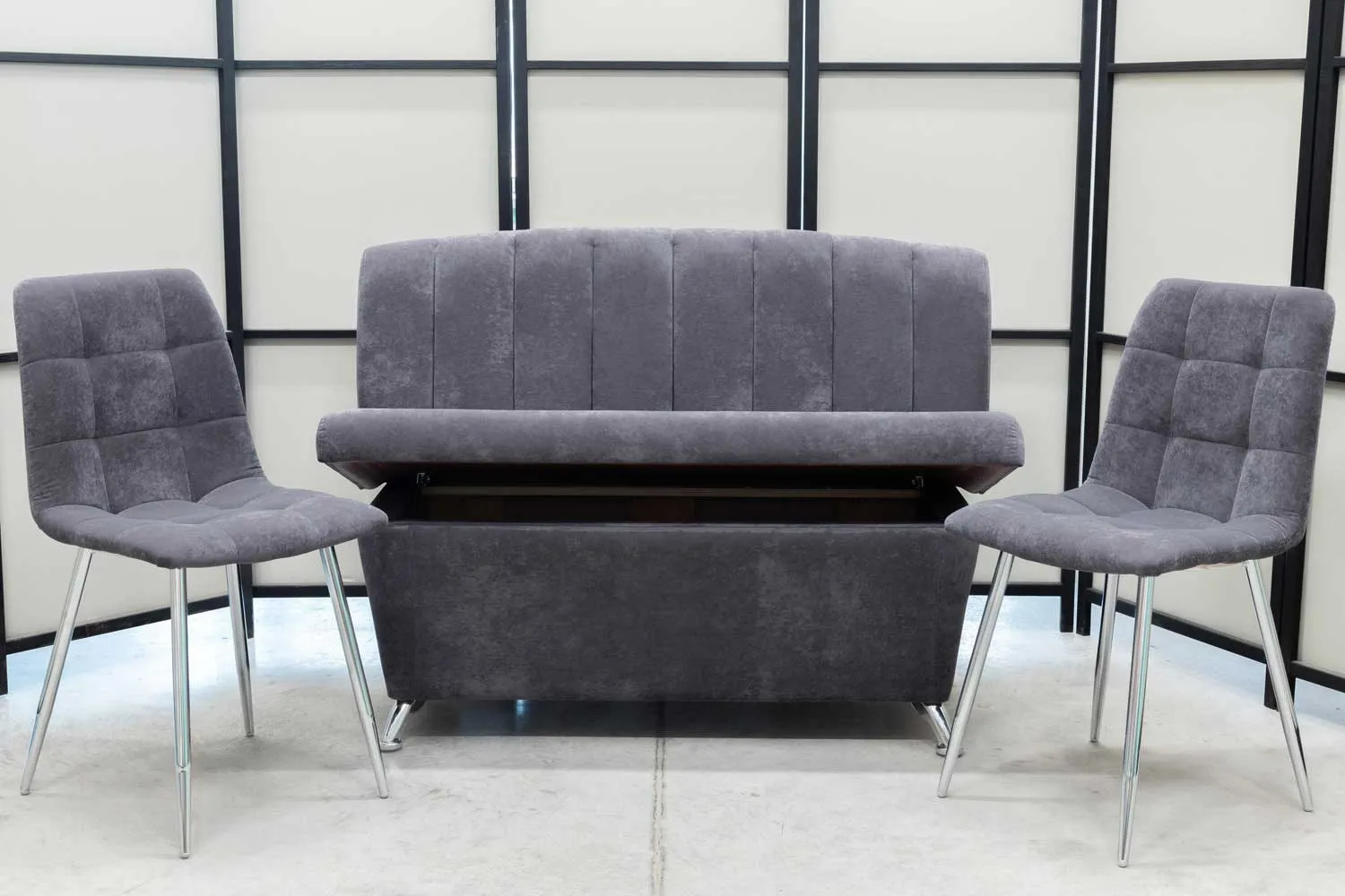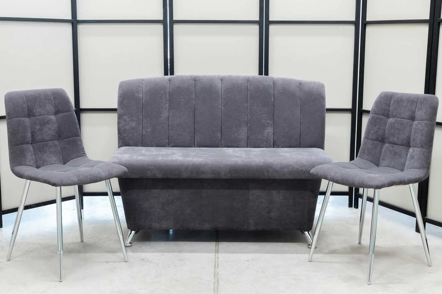 Обеденная группа Альт (диван, 2 стула хром, графит)