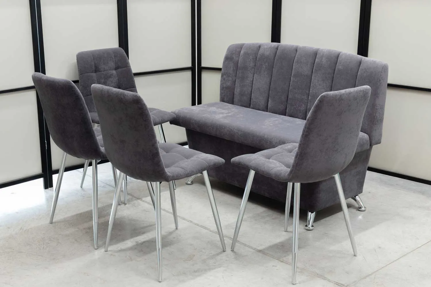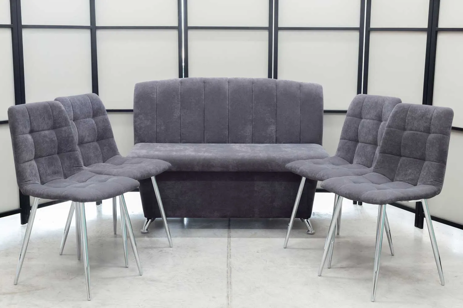 Обеденная группа Альт (диван, 4 стула хром, графит)