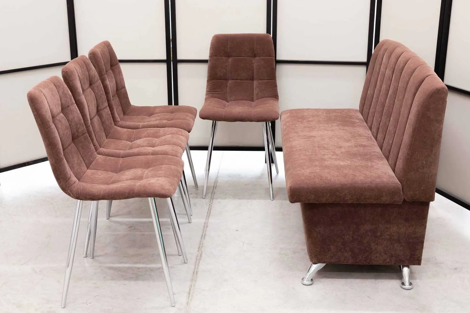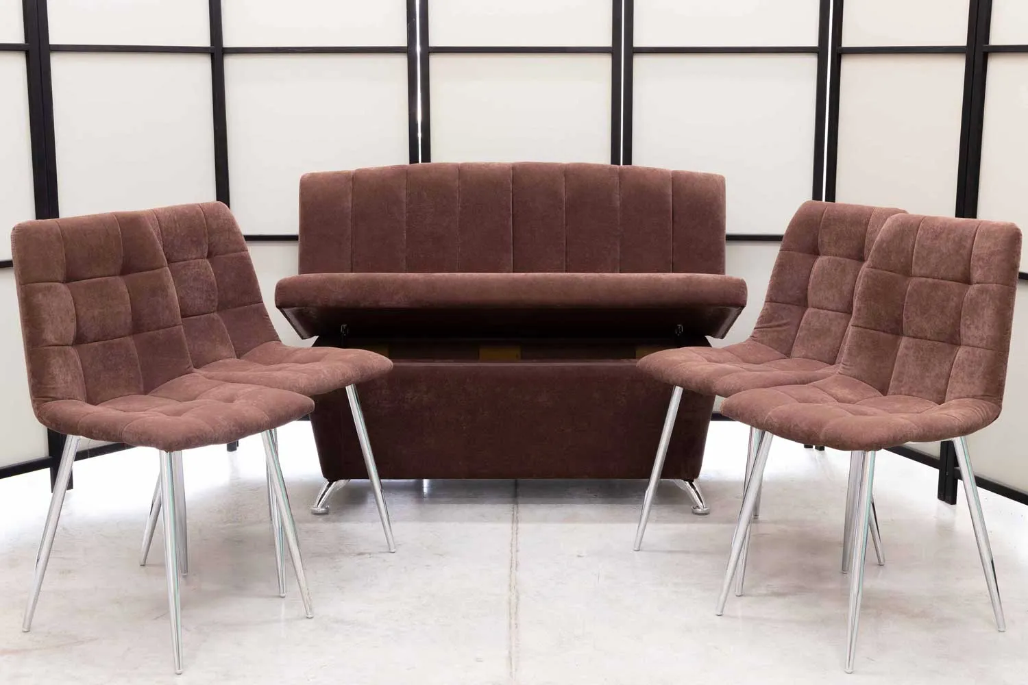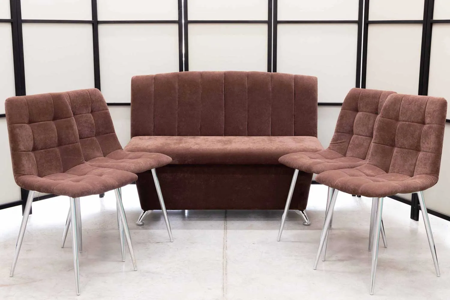 Обеденная группа Альт (диван, 4 стула хром, шоколад)