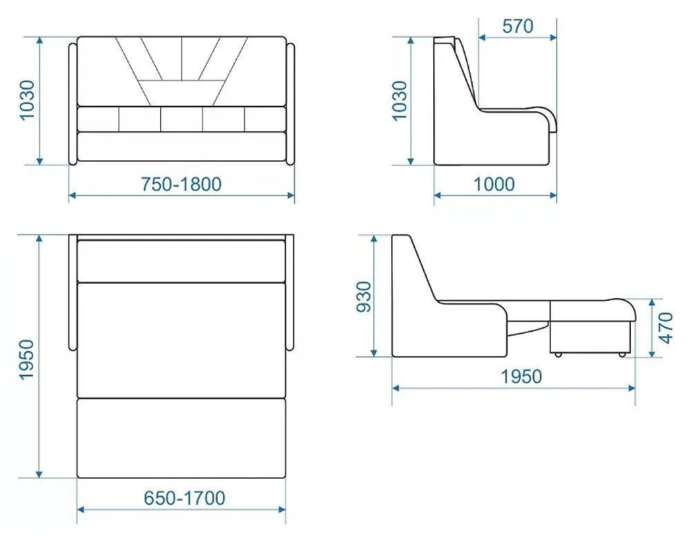 - Высота спального места равна высоте сиденья в сложенном виде.