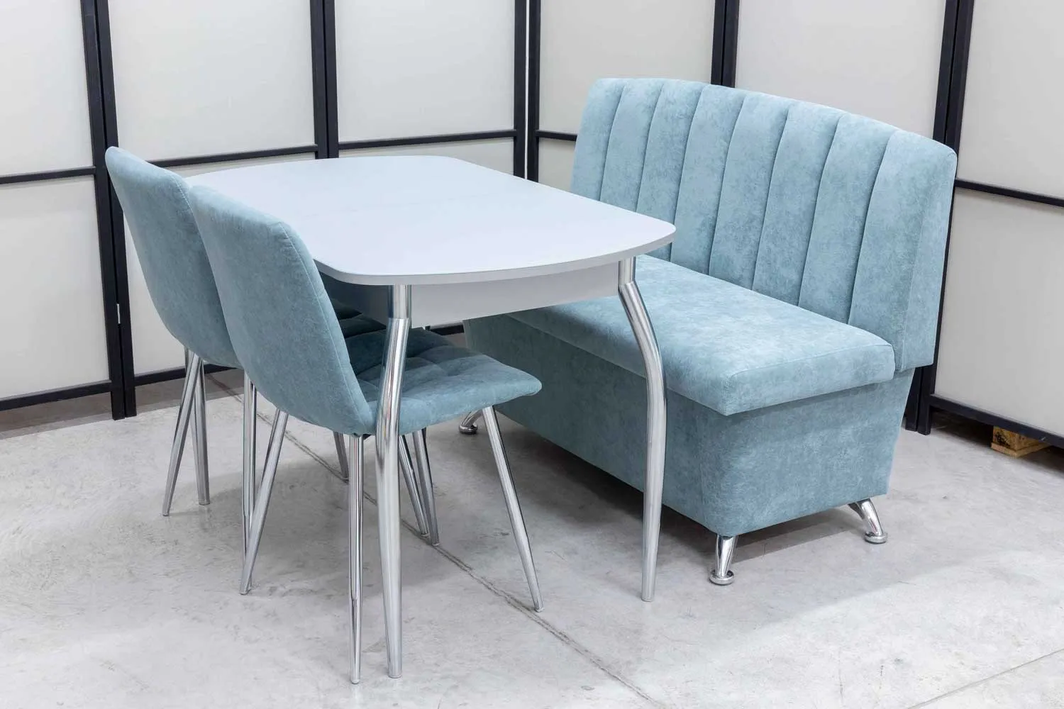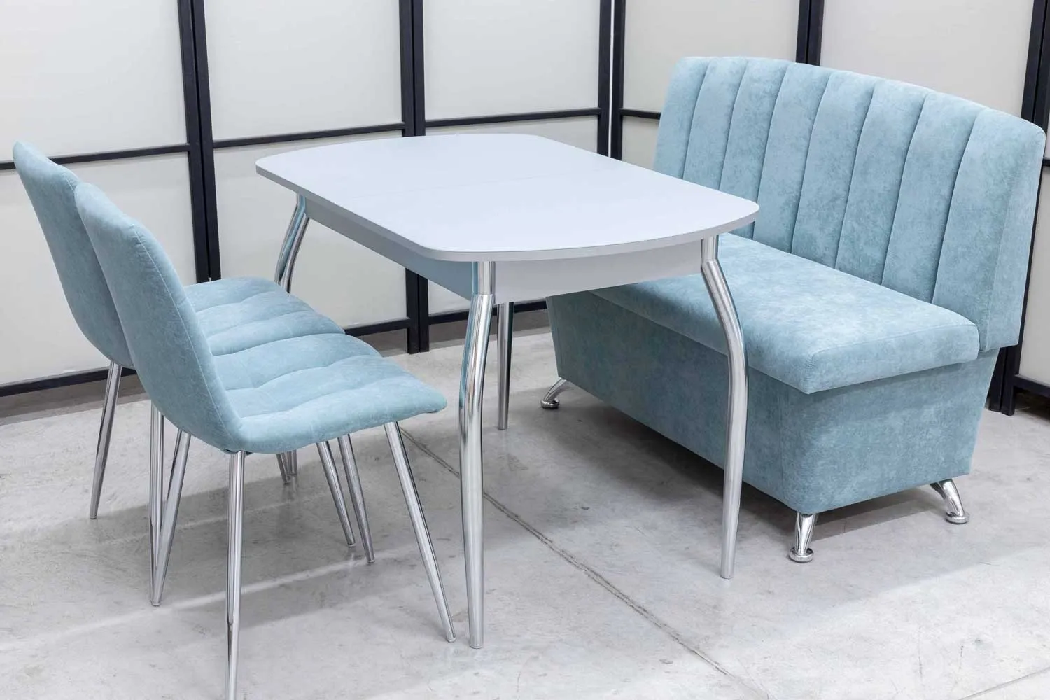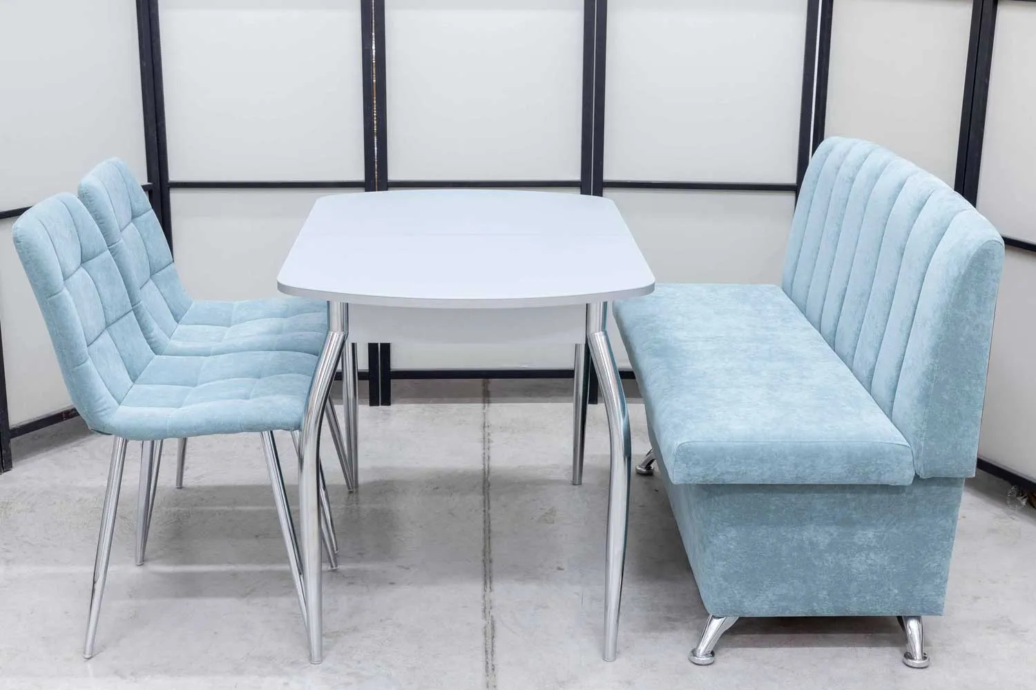 Обеденная группа Альт ментол (диван, стол, 2 стула хром)