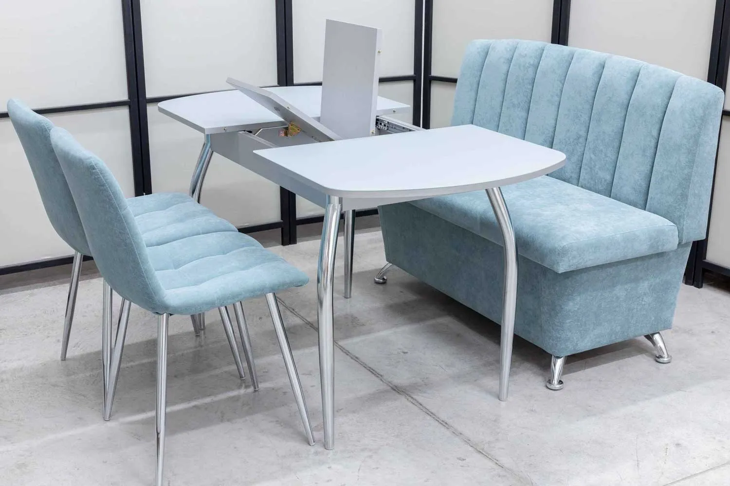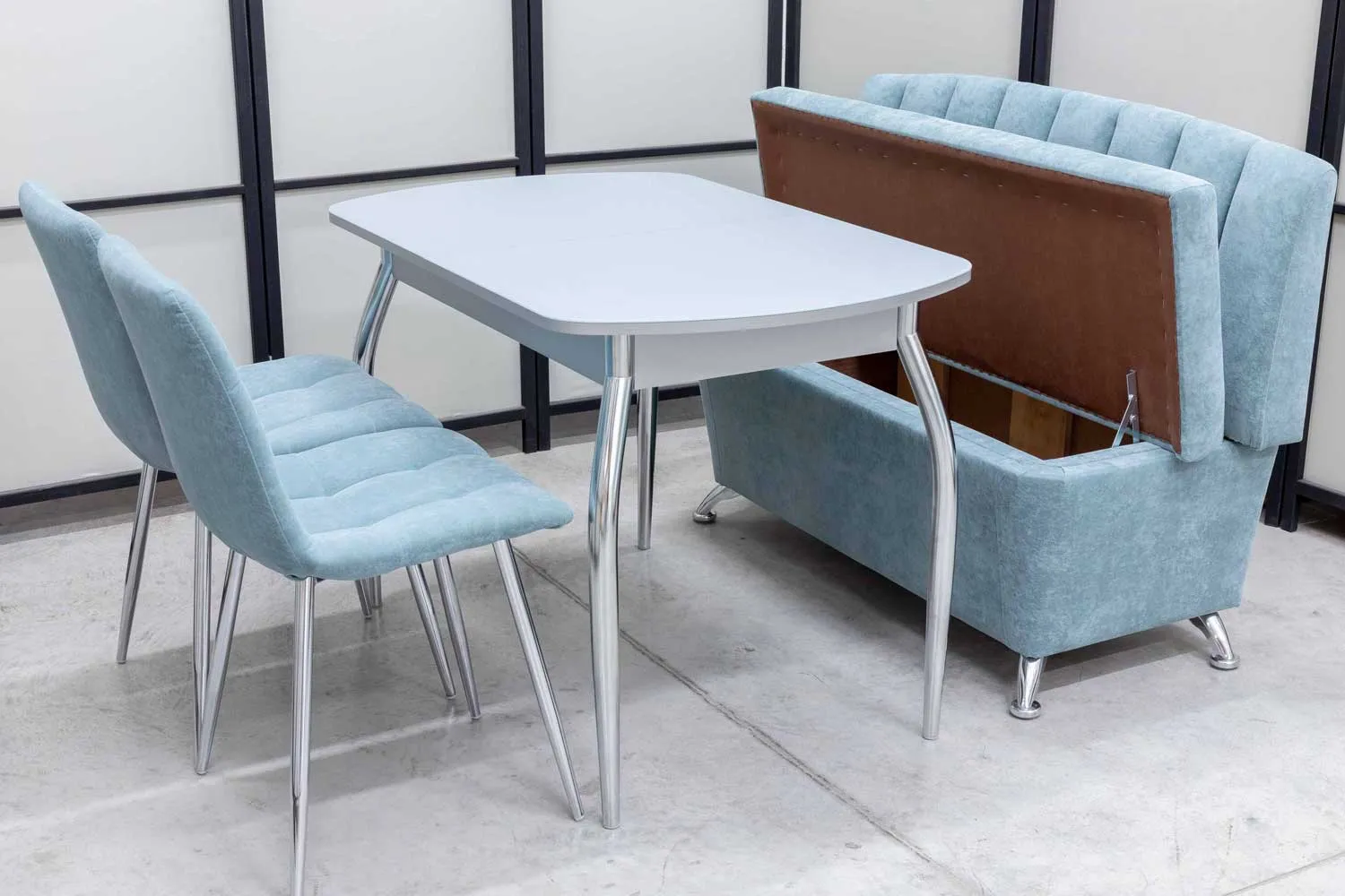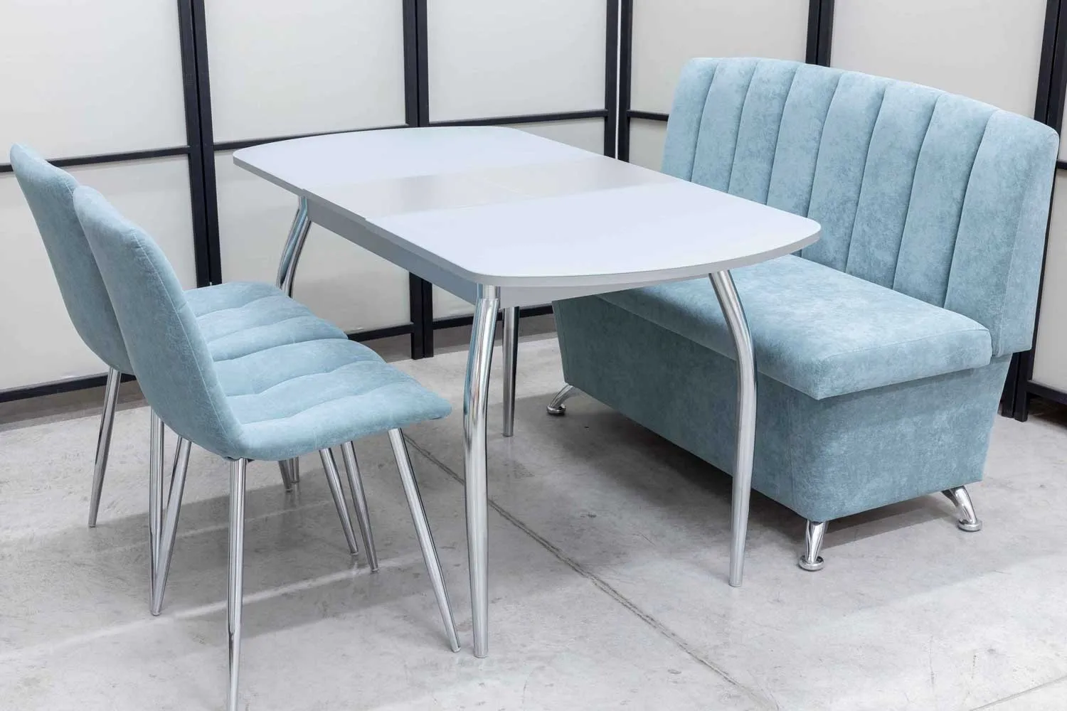 Обеденная группа Альт ментол (диван, стол, 2 стула хром)