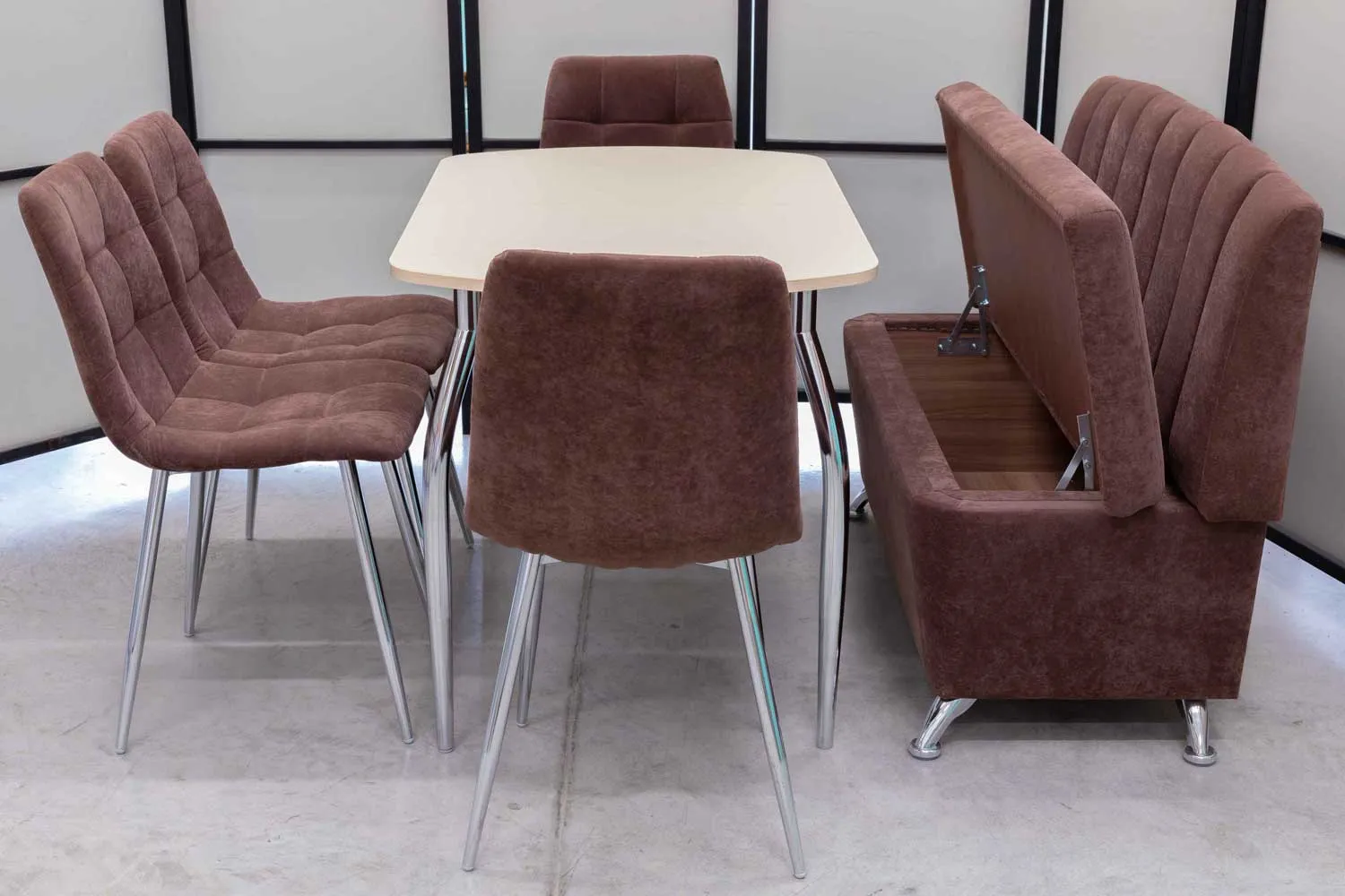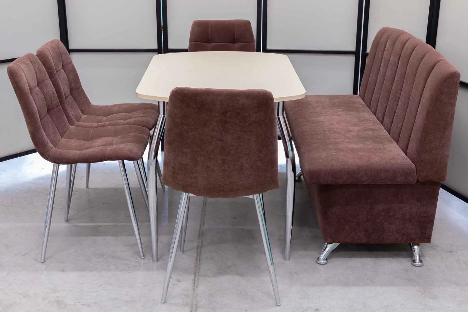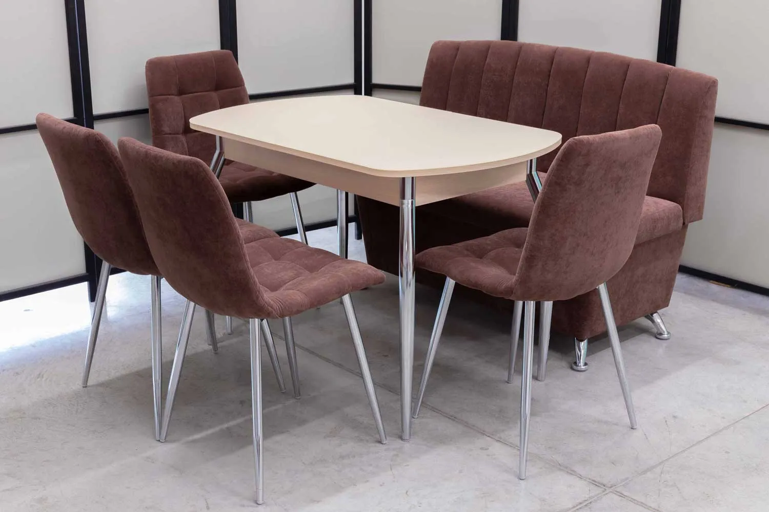 Обеденная группа Альт ментол (диван, стол, 4 стула хром)