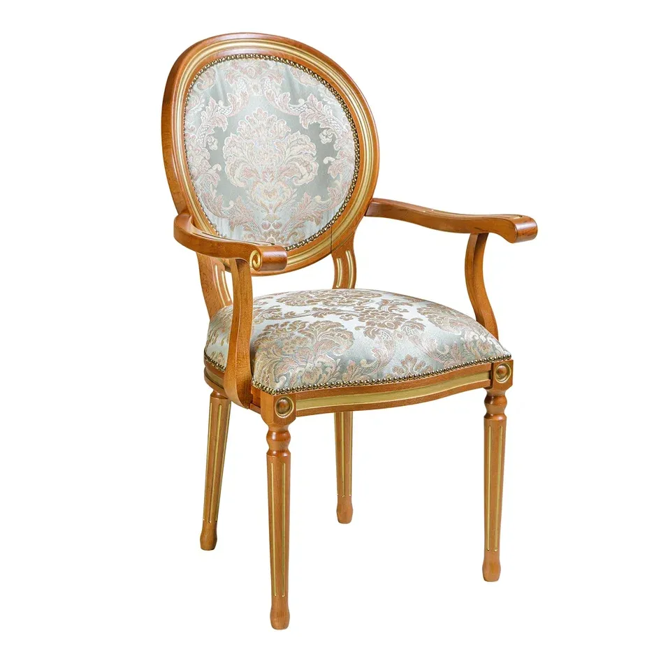 Изящно изогнутые линии ножек и подлокотников наполняют пространство элегантностью и грациозностью. Сиденье и спинка, обтянутые качественной кожей или тканью, предлагают не только исключительный комфорт, но и эстетическое наслаждение, позволяя выбрать цвет и текстуру, которые гармонично впишутся в ваш интерьер.