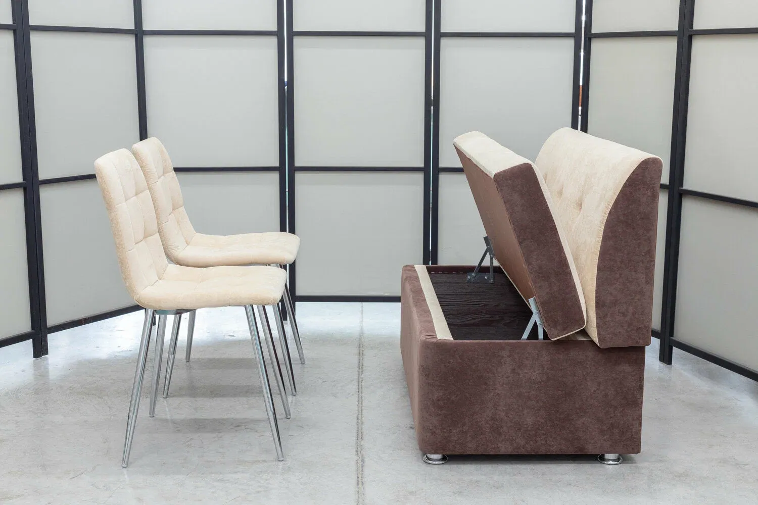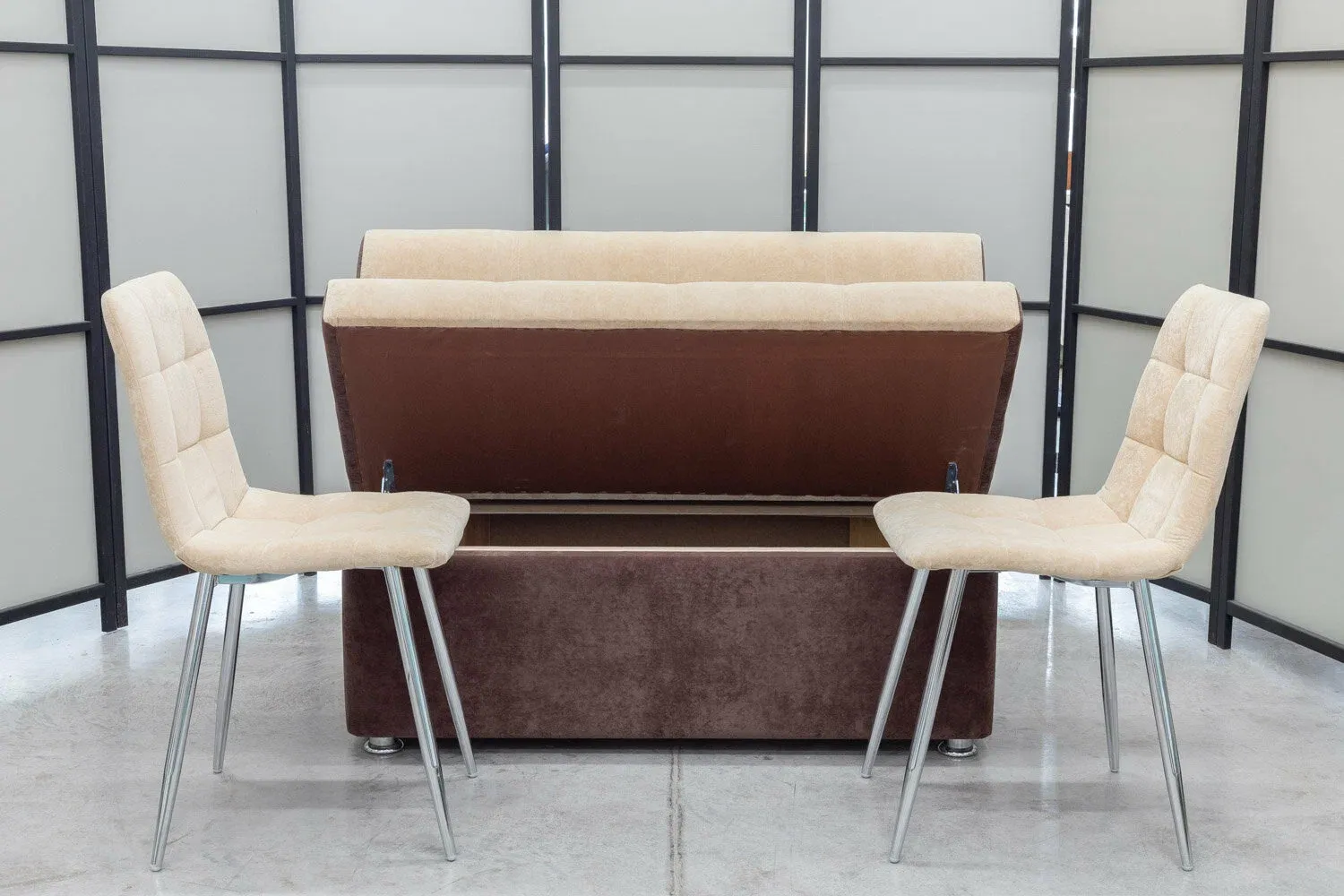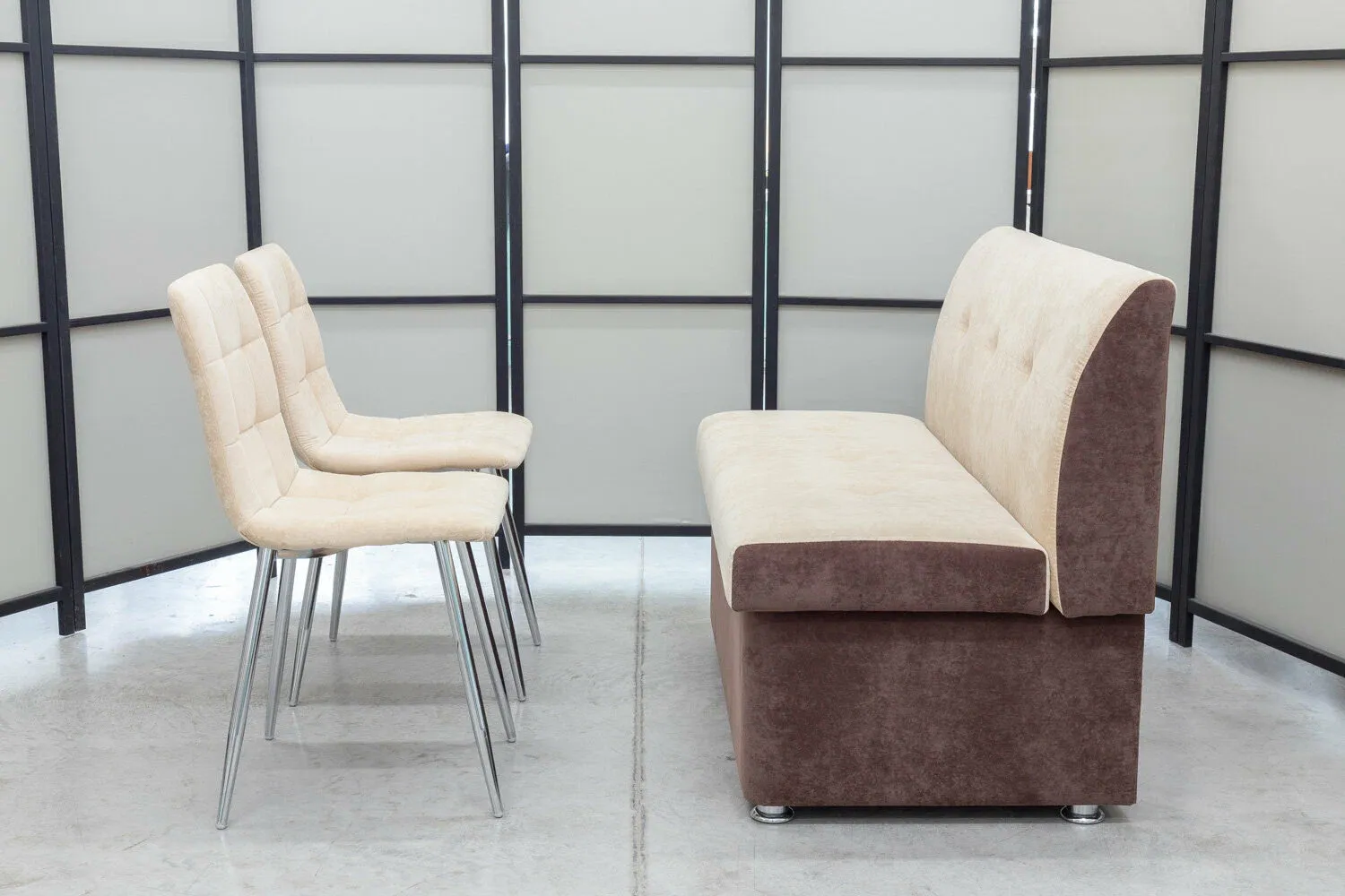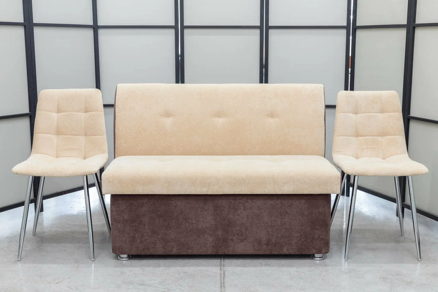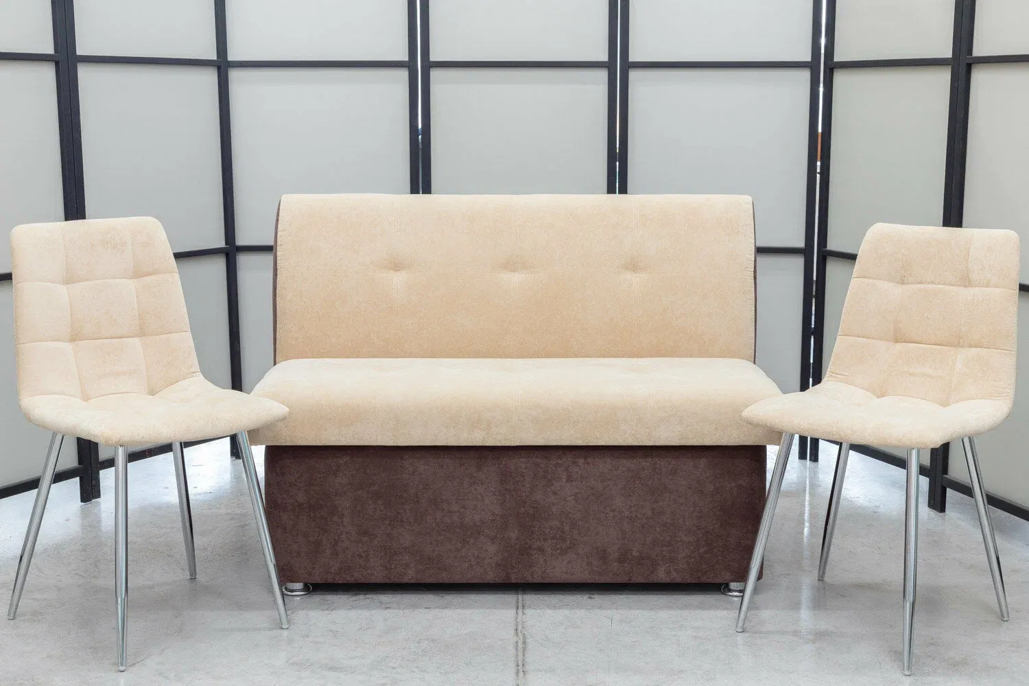 Диван кухонный Денвер + два стула с хромированными ножками (в одном цвете и в одинаковой обивке)