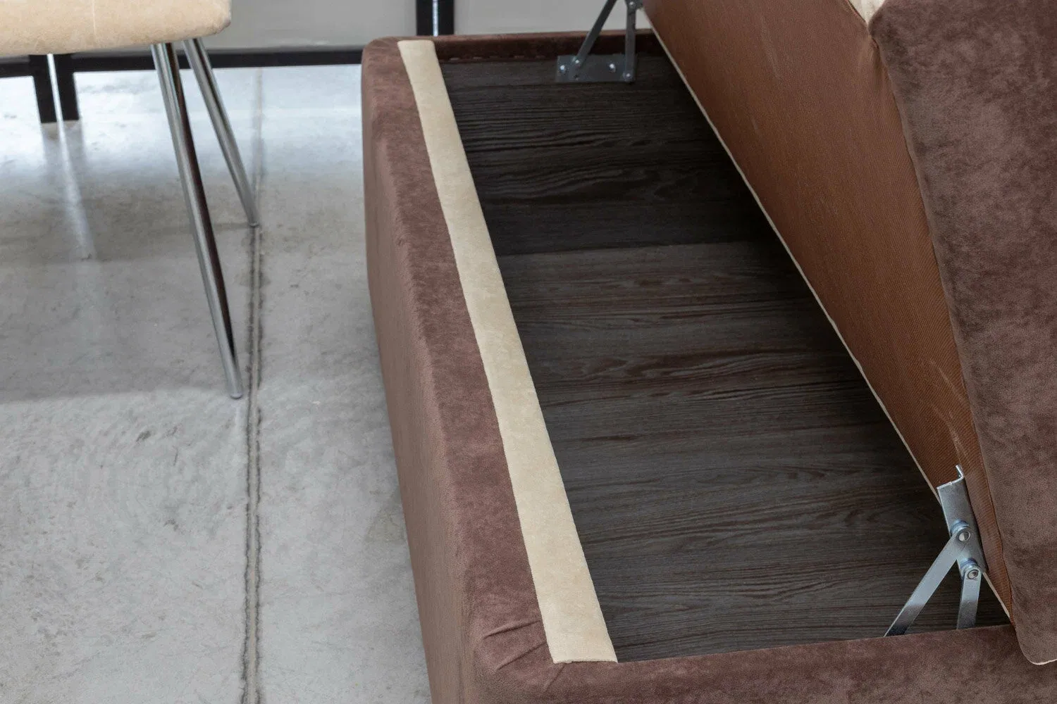 В диване есть ящик для хранения с усиленным дном толщиной 16мм. Это удобное решение для хранения тяжелых предметов. Ящик имеет простую и надежную конструкцию, которая обеспечивает безопасное хранение ваших вещей.