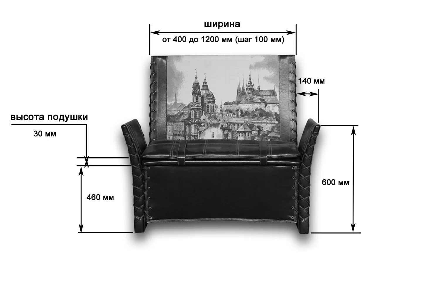 Материал обивки: кожзам, велюр, замша (возможно исполнение из любых материалов на выбор Заказчика)