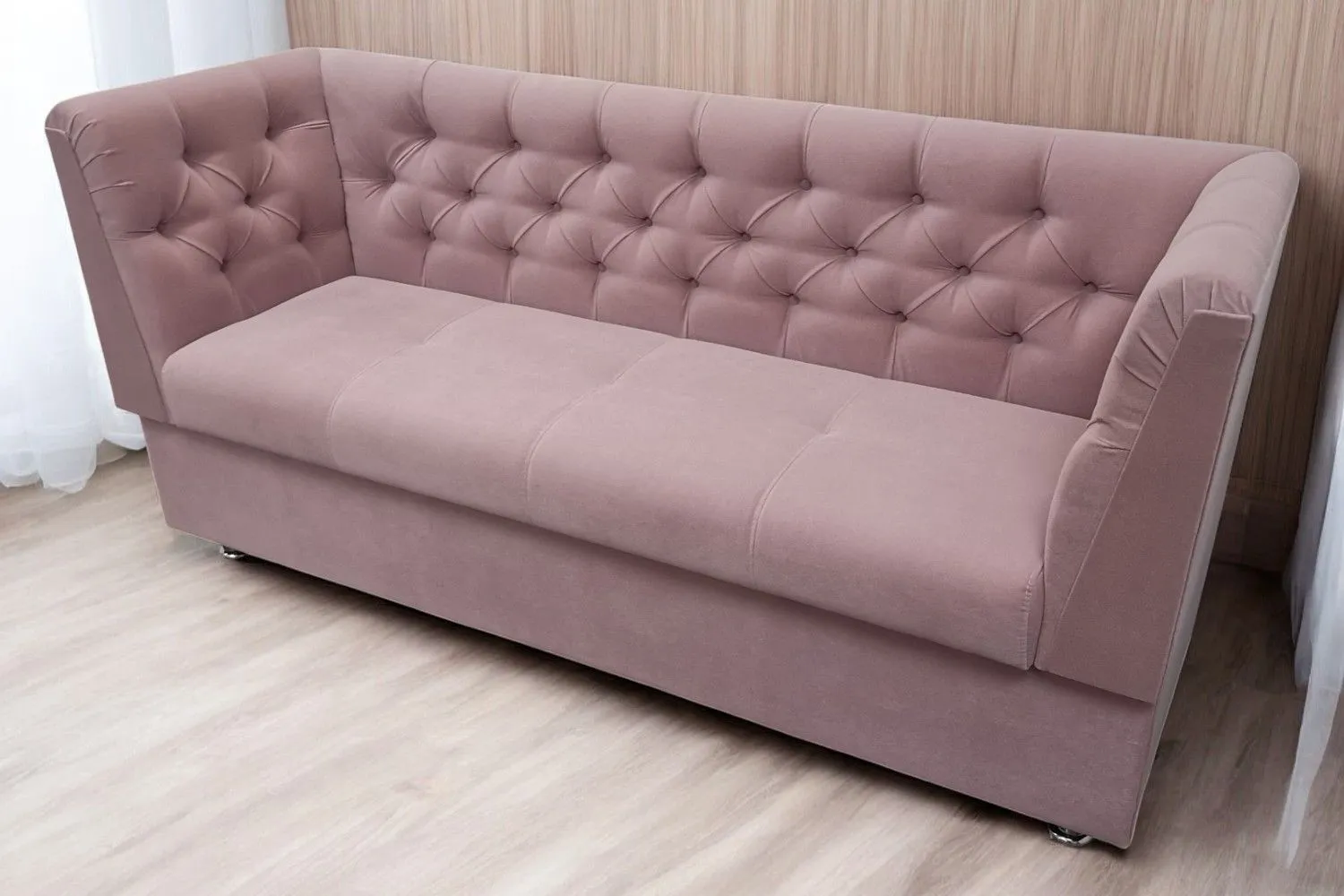 Кухонный прямой диван Лана-1 с двумя боковыми, спальным местом и каретной стяжкой