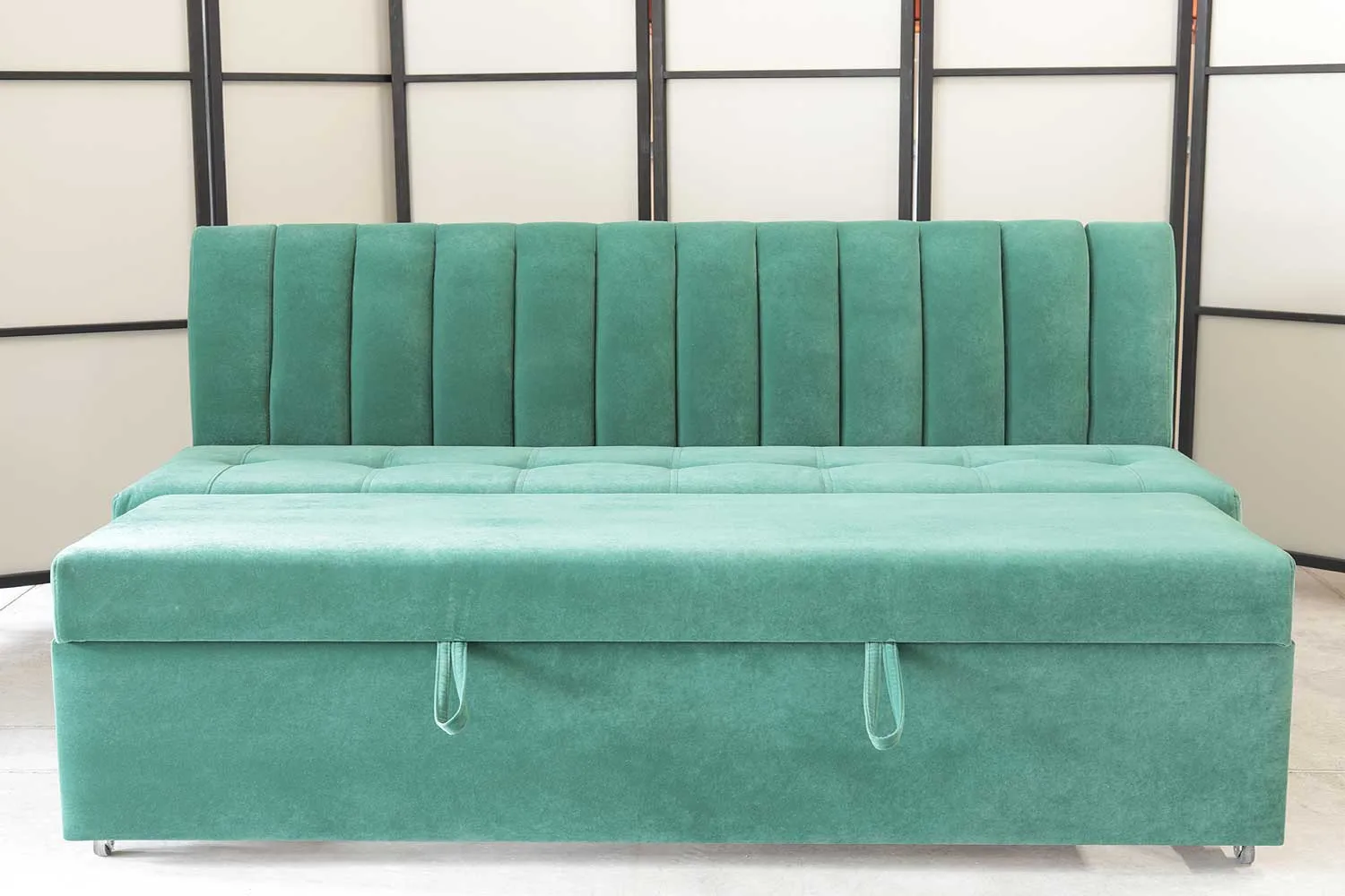 Кухонный прямой диван Алюр со спальным местом и подлокотниками с функцией трансформирования в спинку.