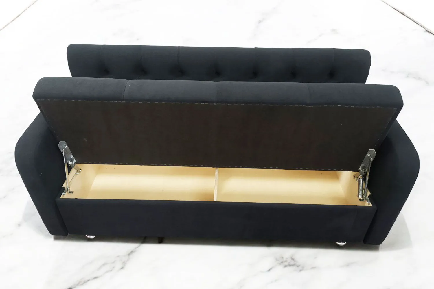 Кухонный прямой диван Лана-1 с подлокотниками, ящиком и каретной стяжкой