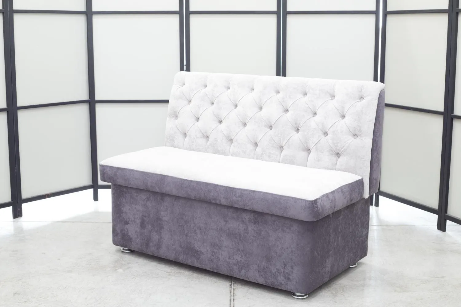 Кухонный прямой диван Монро с каретной стяжкой и ящиком