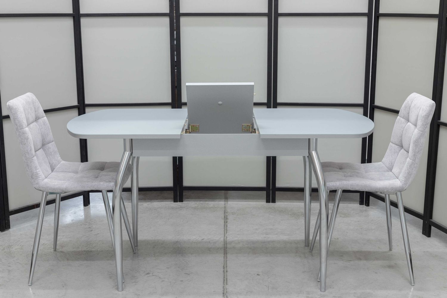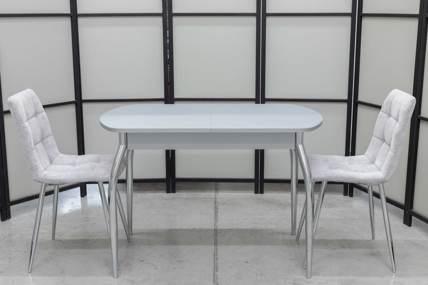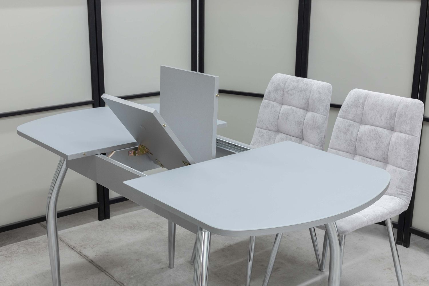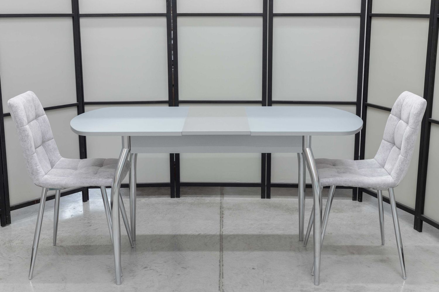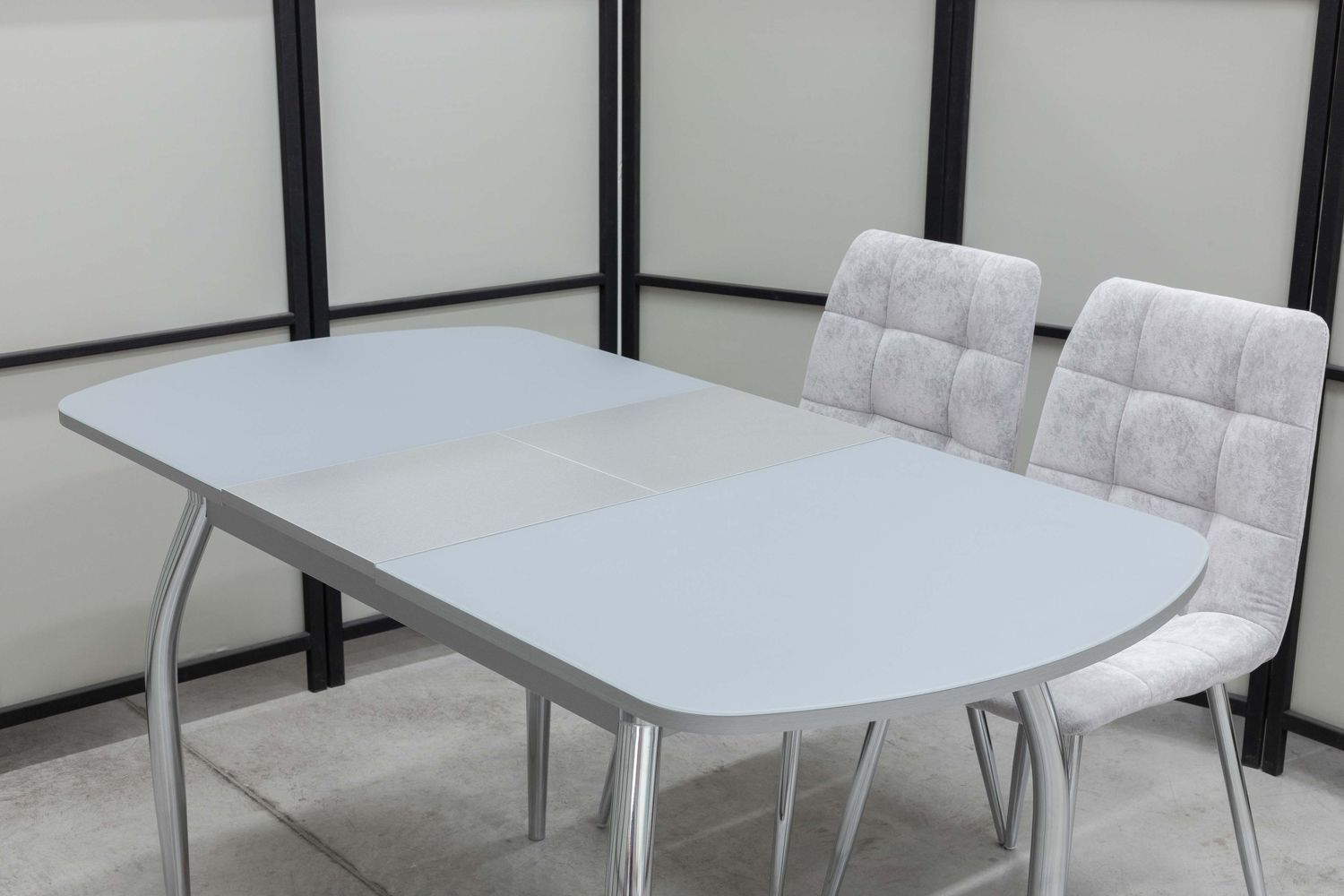 Обеденная группа Гала Дуо, стол матовое стекло, 110(140)х70 см, обивка стульев антивандальная, моющаяся, антикоготь, цвет - серый