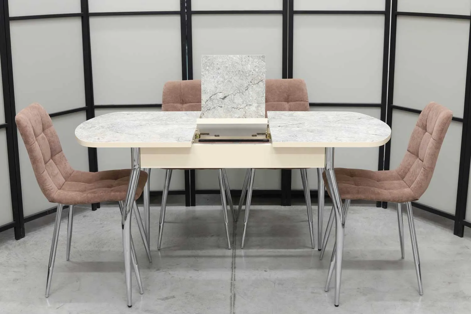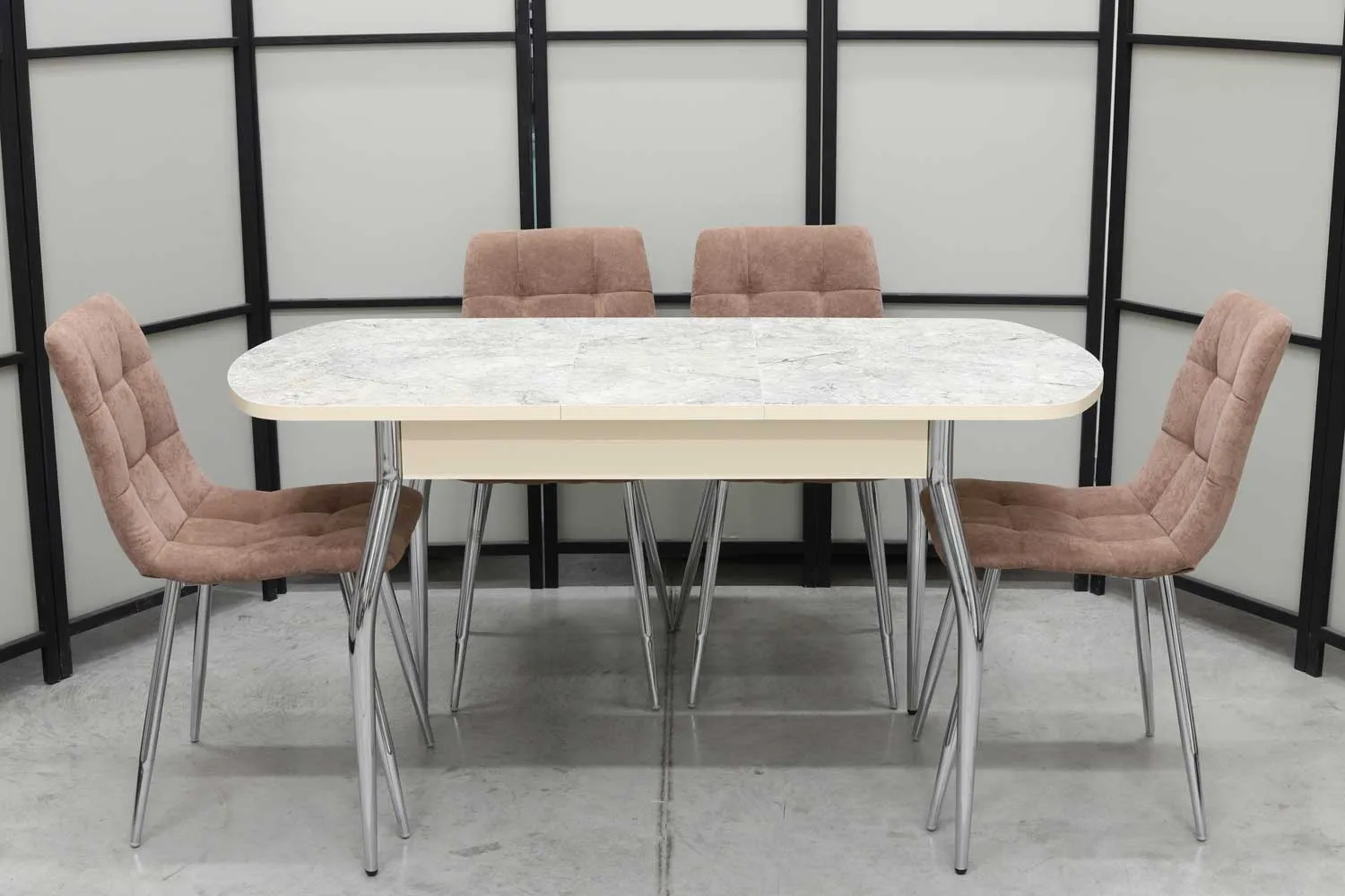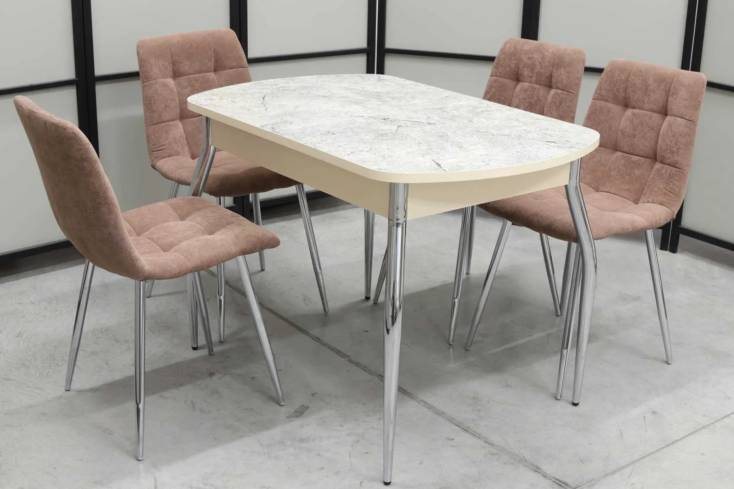 Обеденная группа Милт, стол HPL-палстик, 110(140)х70 см, обивка стульев антивандальная, моющаяся, антикоготь, цвет - мокка
