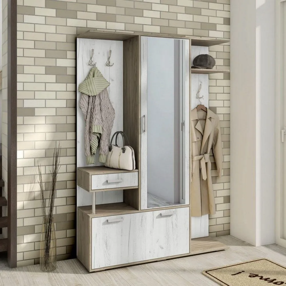 Узкая прихожая Арго-1 с вместительным зеркальным шкафом, выдвижным ящиком и небольшой вешалкой.