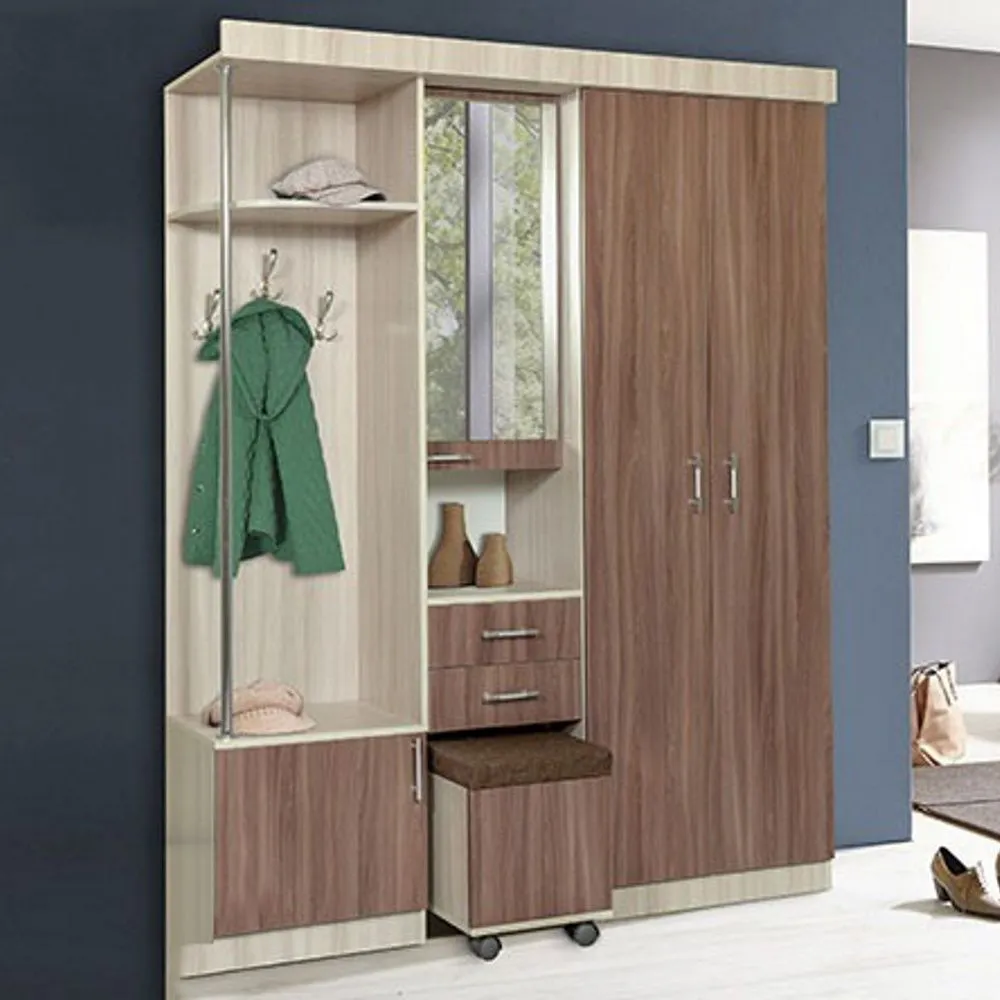 Готовая прихожая Елена-3 с вместительным распашным шкафом, выдвижными ящиками, зеркалом, небольшой вешалкой и удобным пуфиком.