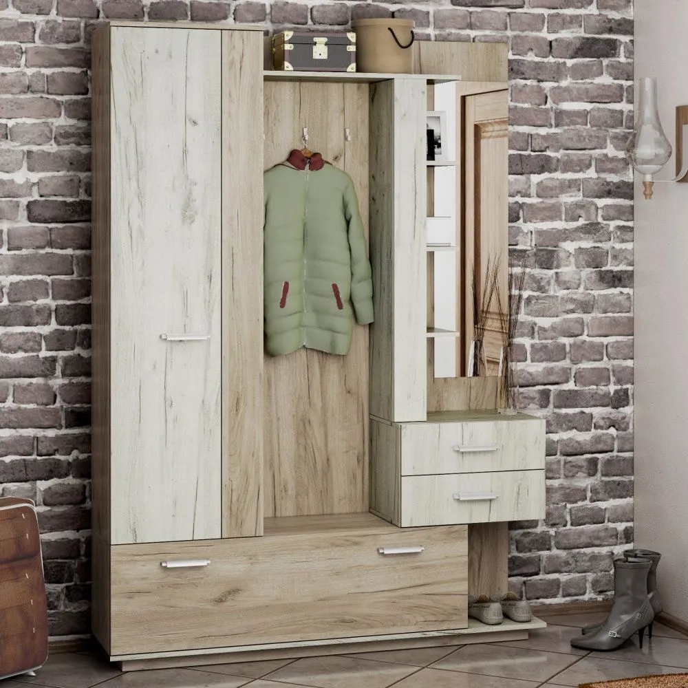 Узкая прихожая Марио с вместительным шкафом, выдвижными ящиками и небольшой вешалкой.