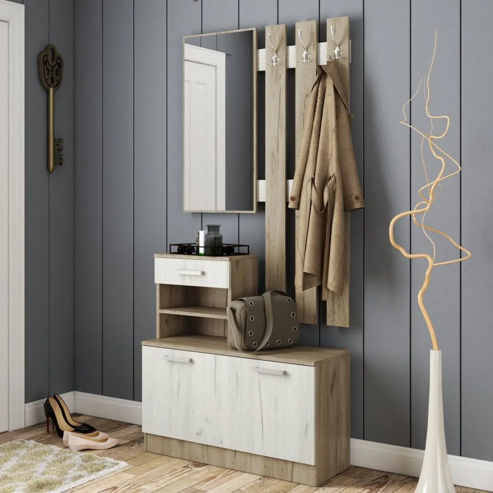 Узкая небольшая прихожая Ната-Лина М с вместительным нижним ящиком, выдвижным ящиком, зеркалом и вешалкой.