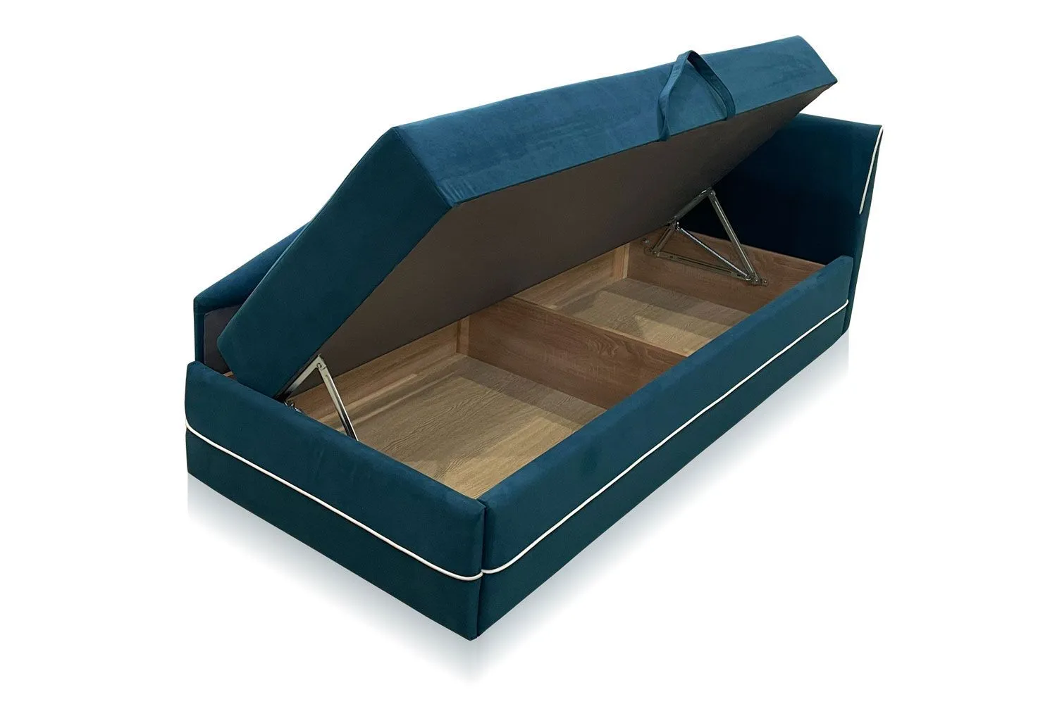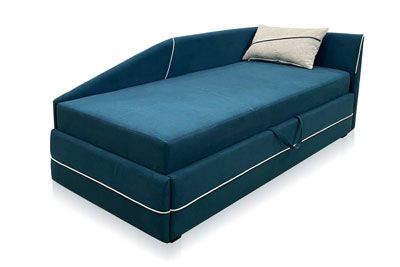 Чтобы постельное белье всегда было под рукой, внизу тахты предусмотрен вместительный ламинированный ящик для принадлежностей. Легкий доступ к нему обеспечивает подъемный механизм.
