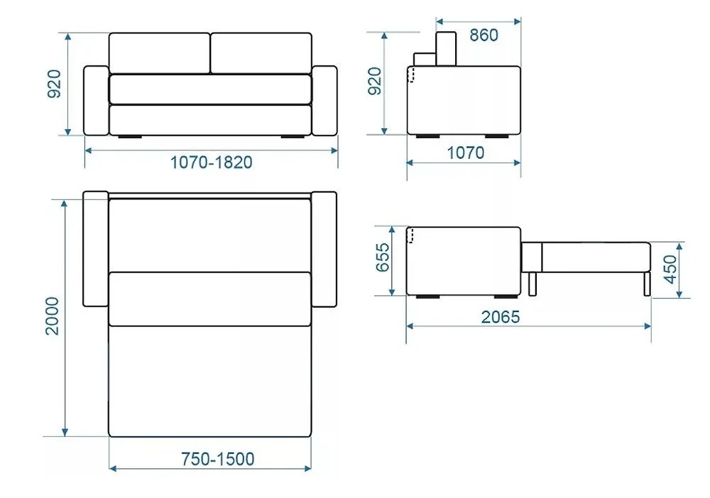 Просторное и ровное спальное место обеспечивает комфортный отдых. При небольших габаритах дивана спальное место варьируется от 0,75*2,0 м до 1,5*2,0 м. На заказ в модификации "Сидни Дабл" можем изготовить размер спального места 2,0*2,0 м.