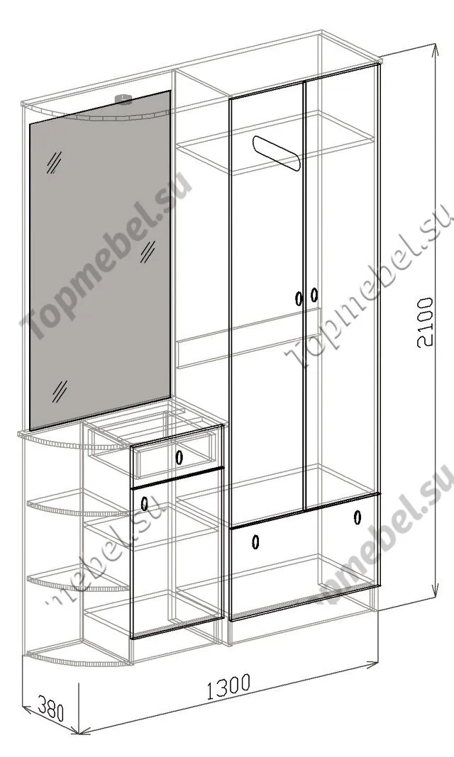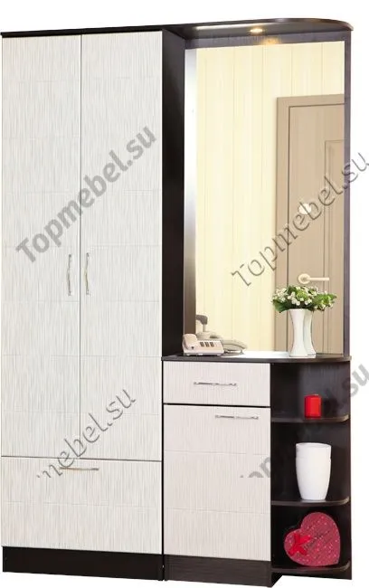 Модуль №1 в прихожей София - это полноценная небольшая прихожая, которая может использоваться как модуль или самостоятельный элемент. Состоит из зеркала, шкафа, тумбочки, ящика и небольших полок. Мебель отличается красивым дизайном и функциональностью, поместит необходимые вещи и различные мелочи. Можно приобрести отдельно или в составе модульной прихожей София. Стоимость в цвете Белый глянец - 12 300 руб.