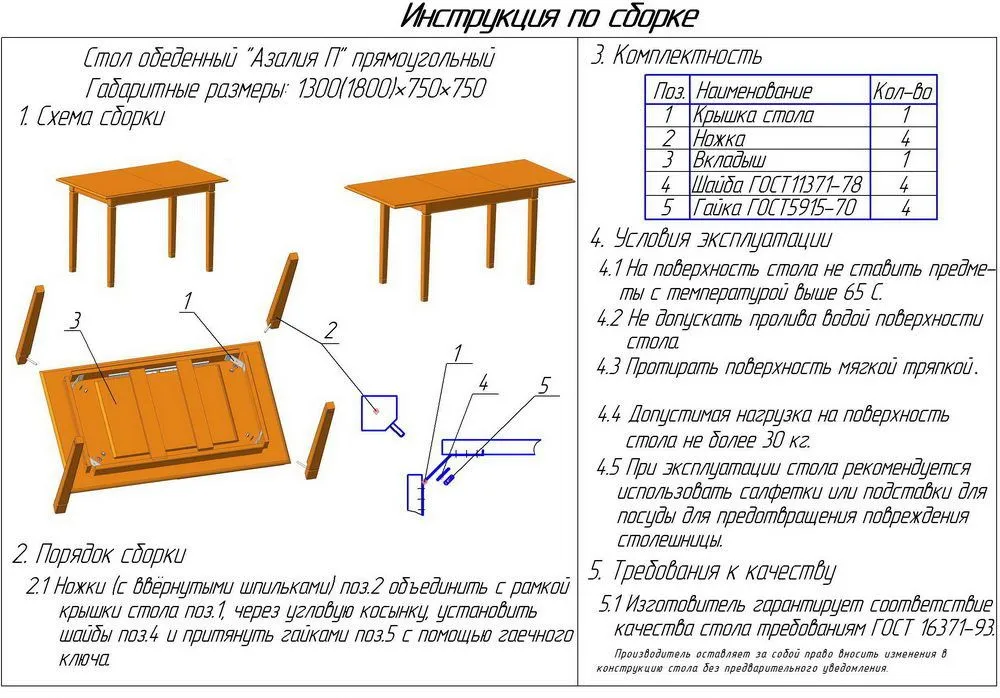 Механизм синхронного раздвижения и складные вкладыши делают этот стол не только красивым, но и удобным в использовании. Такой стол станет незаменимым элементом интерьера, сочетая в себе красоту и функциональность. И, конечно же, соответствие ГОСТ и 18-месячный гарантийный срок подтверждают его высокое качество.