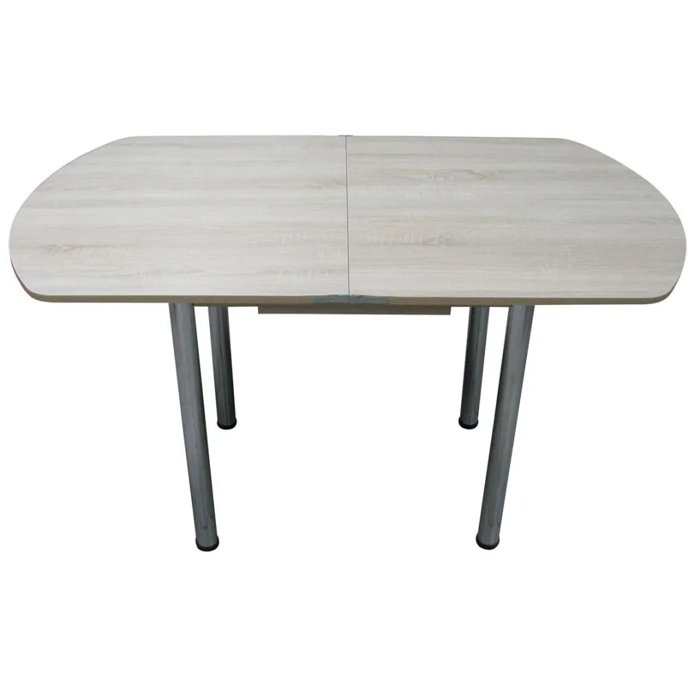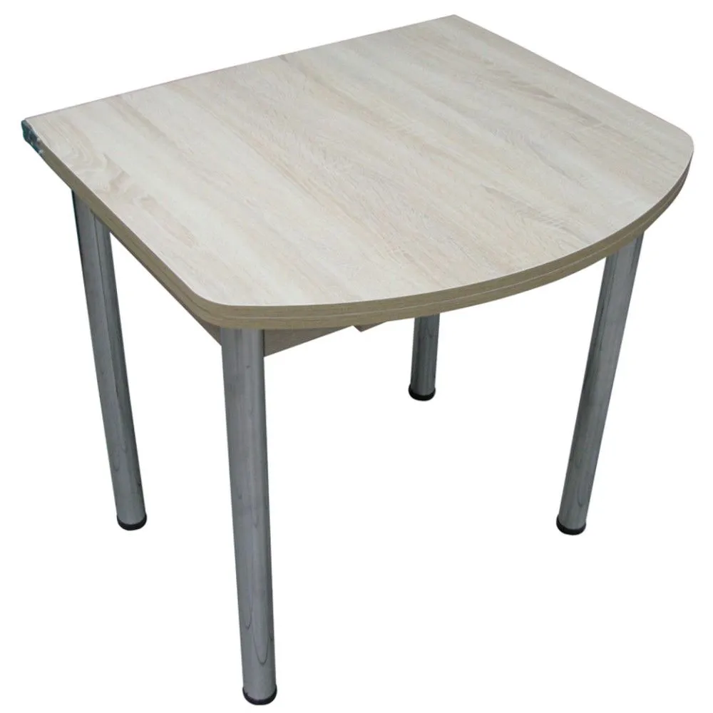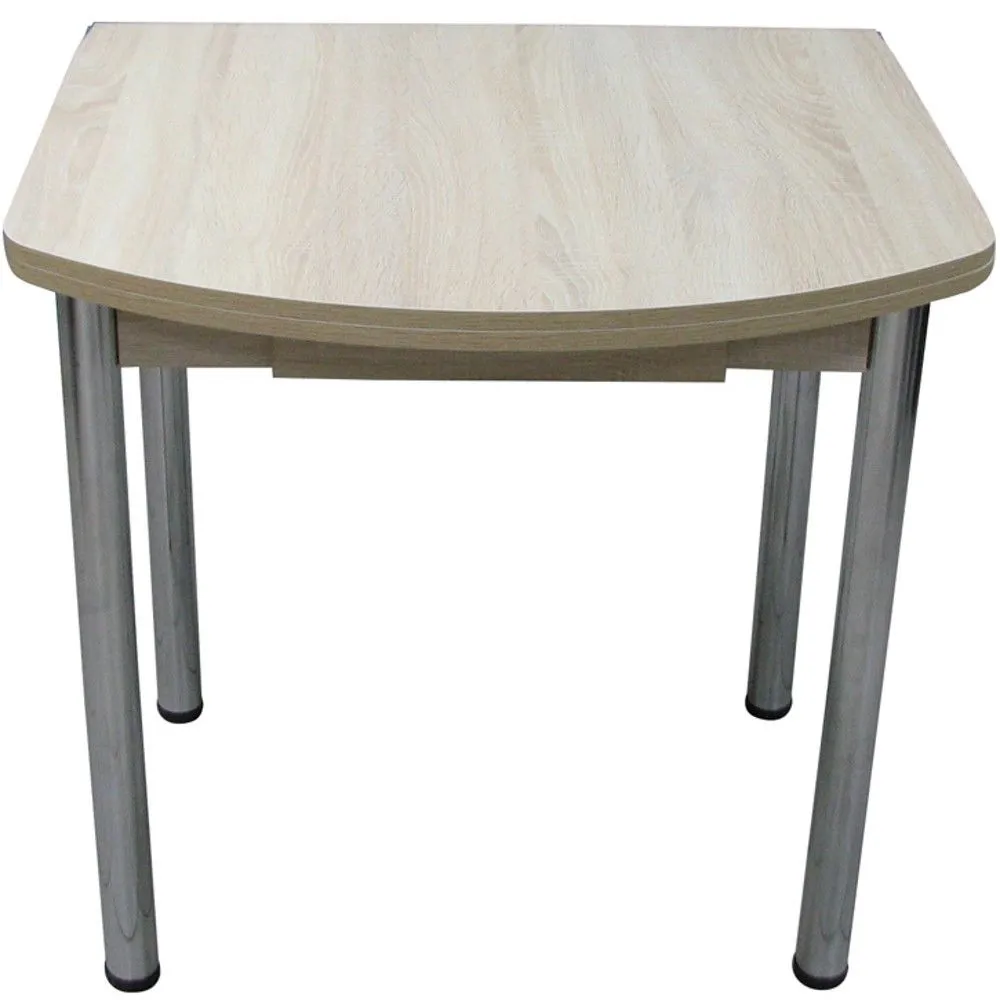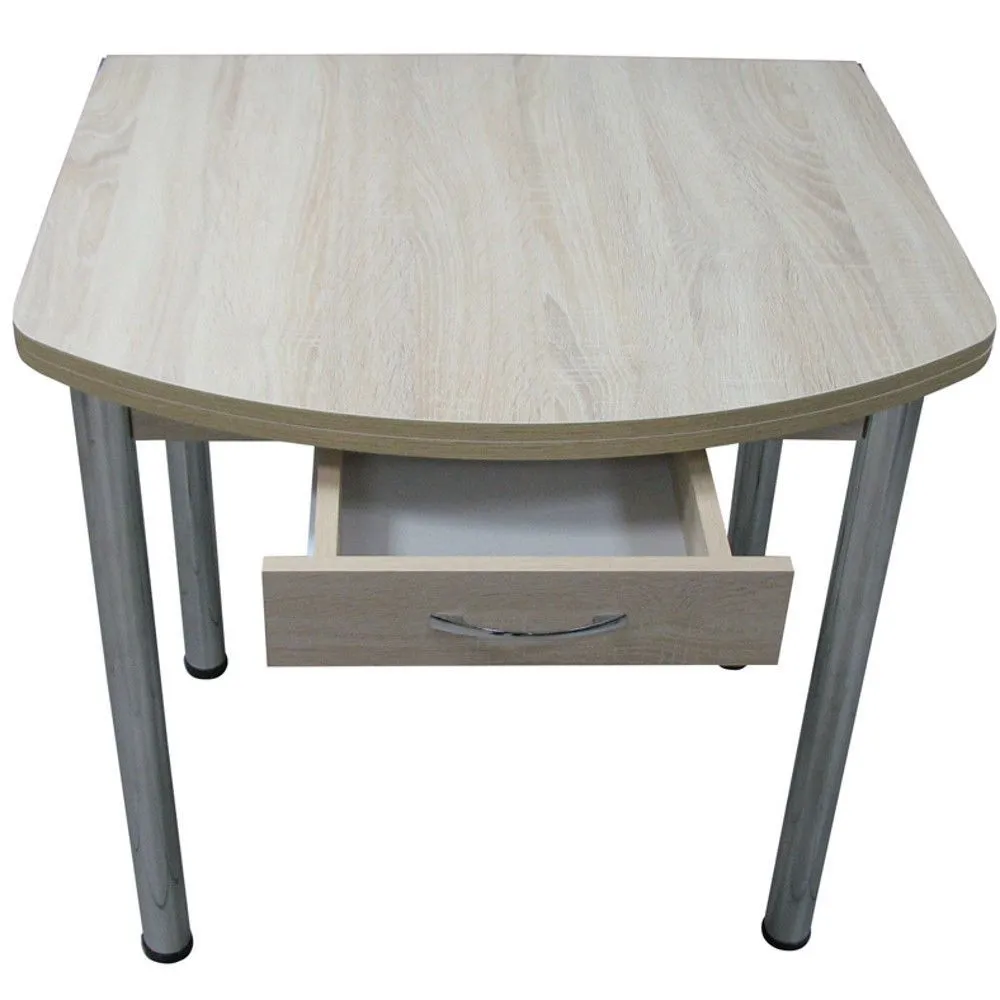 Поворотно-раскладной полуовальный стол с ящиком на хромированных прямых ножках. Данная модель поставляется в разобранном виде.