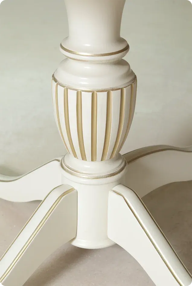 Подстолье, выполненное из массива бука, растущего в чистых горных районах Северного Кавказа, говорит о природной красоте и экологичности материалов. Покрытие стола трёхслойным двухкомпонентным лаком "MILESI" гарантирует сохранение внешнего вида даже при интенсивной эксплуатации, минимизируя риск царапин.