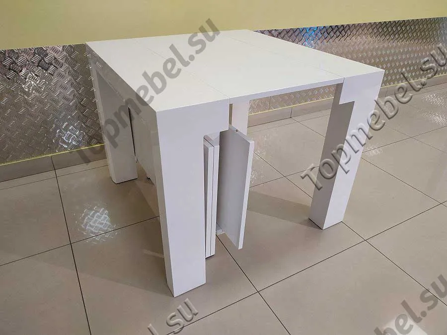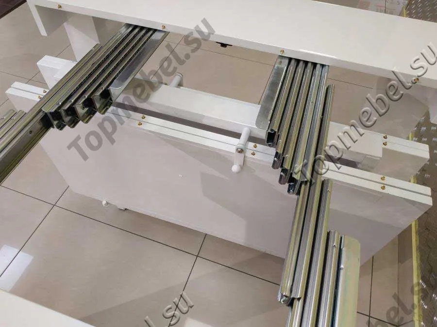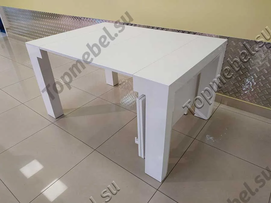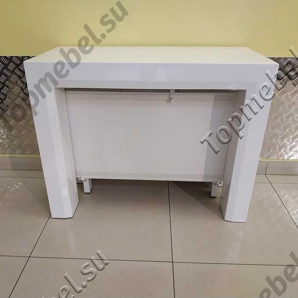Стол-консоль B2307-1 с хранением панелей-вставок внутри, изготовлен из высококачественного МДФ и имеет надежное многослойное лаковое покрытие «высокий глянец». В средней металлической ножке предусмотрено место для хранения панелей-вставок. Система фиксации позволяет хранить любое их количество внутри, а все остальные панели можно устанавливать на сам стол. Нижние поверхности основных ног покрыты войлоком. Цельнометаллическая средняя опора покрыта белой эмалью и внизу имеет ролики.