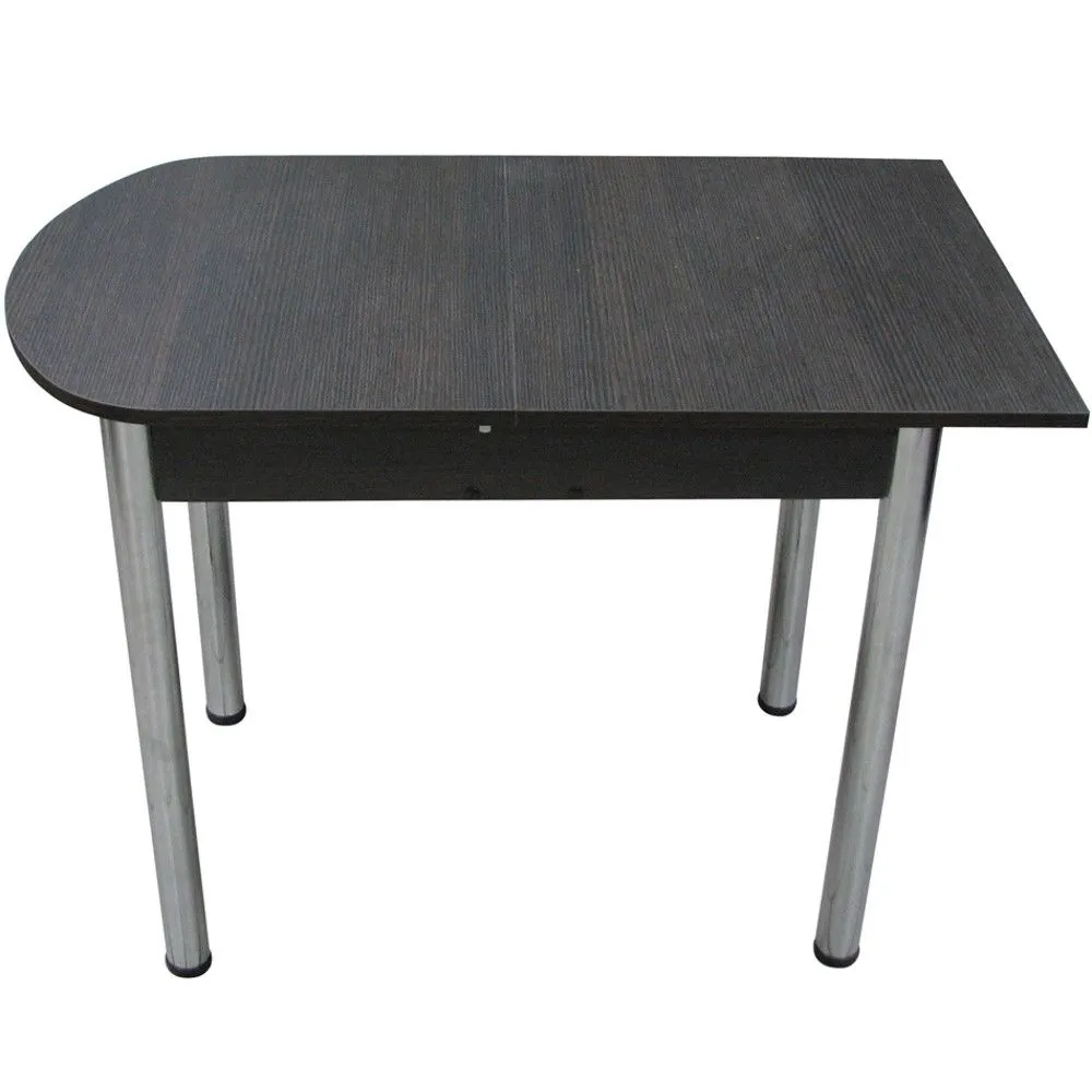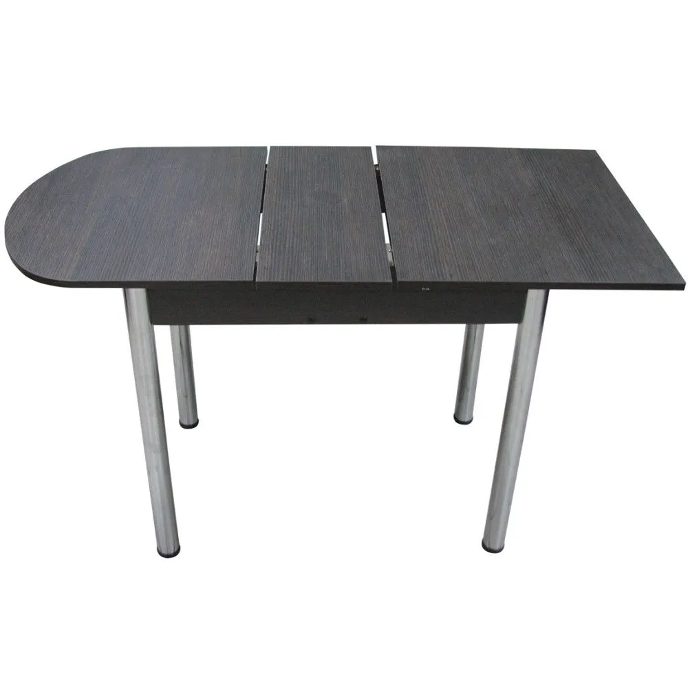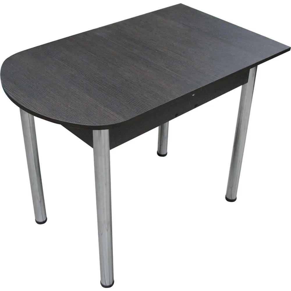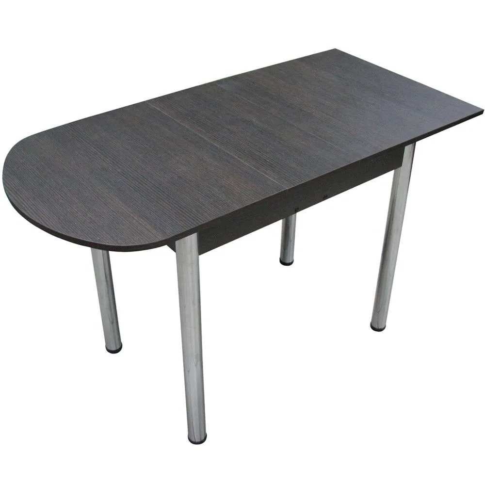 Раздвижной пристенный стол для кухни на хромированных прямых ножках.