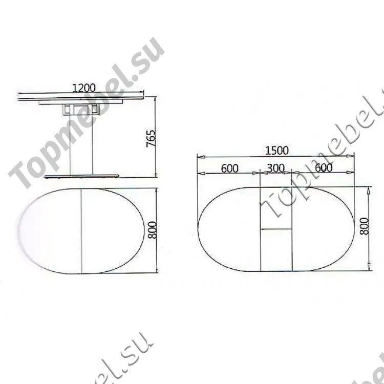 Размеры: 1200(1500)х800х765 мм