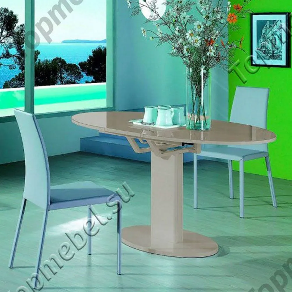 Предлагаем Вашему вниманию раскладной стол В2332-1 капучино. Данная модель имеет овальную столешницу из МДФ, покрытую высококачественным полимерным лаком и стеклом цвета капучино. После легких небольших манипуляций с механизмом раскладки типа «бабочка», размер стола превращается из 120 см в 150. Средняя секция стола без стеклянных элементов. В виду оригинальности исполнения стола В2332-1 на одной ножке, под столешницей и в самой центральной ноге имеется прочная металлическая рама, которая в сочетании с овальным основанием столешницы придает столу отличную устойчивость. Стол трансформер В2332-1 капучино отличное решение для любого интерьера будь-то кухня или гостиная.