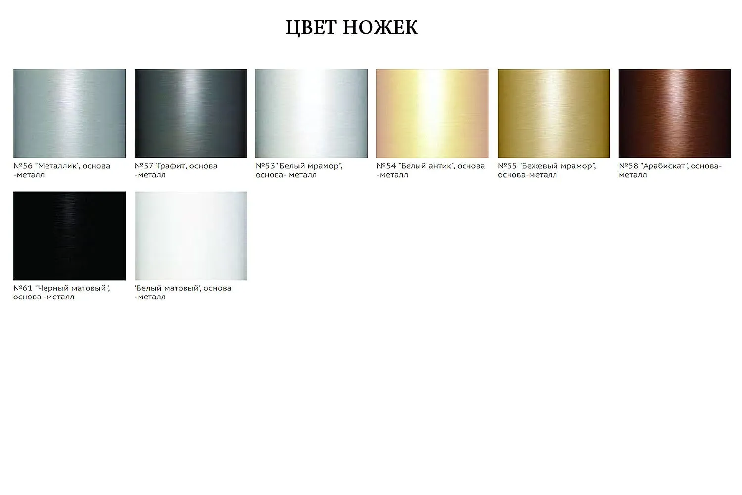 Форма ножек на выбор: Гнутая / Гнутая с утонением / Прямая круглая / Прямая квадратная / Прямая с утонением