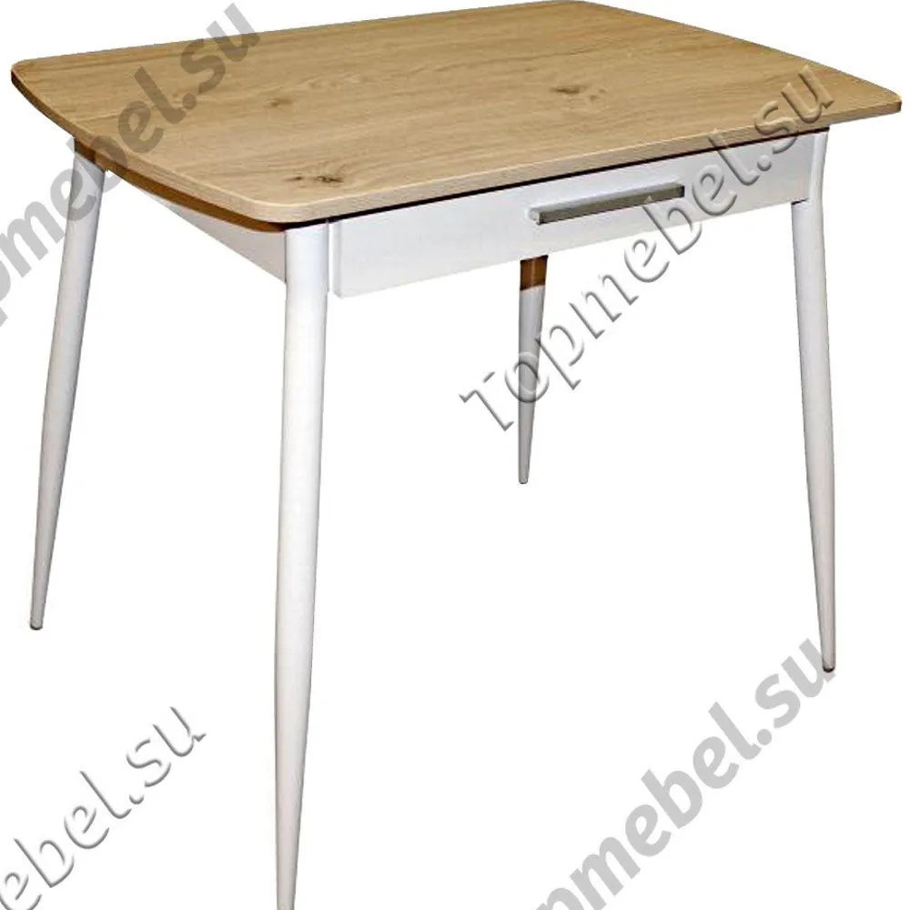 Маленький нераздвижной стол Граус М55 с выдвижным ящиком. Материал столешницы ЛДСП – гигиеничный, легко моющийся и термостойкий, к тому же не боится пятен от кофе, вина, пищевых продуктов. Особое внимание нами уделяется и безопасности за счет использования покрытия торцов стола пластиковой кромкой. Конструкция стола предусматривает крепление ножек к раме при помощи специальных болтов, чтобы при необходимости стол можно было легко разобрать для транспортировки. Данная модель может быть укомплектована по Вашему выбору прямыми или изогнутыми ножками, придающими столу помимо оригинальности дополнительную устойчивость.