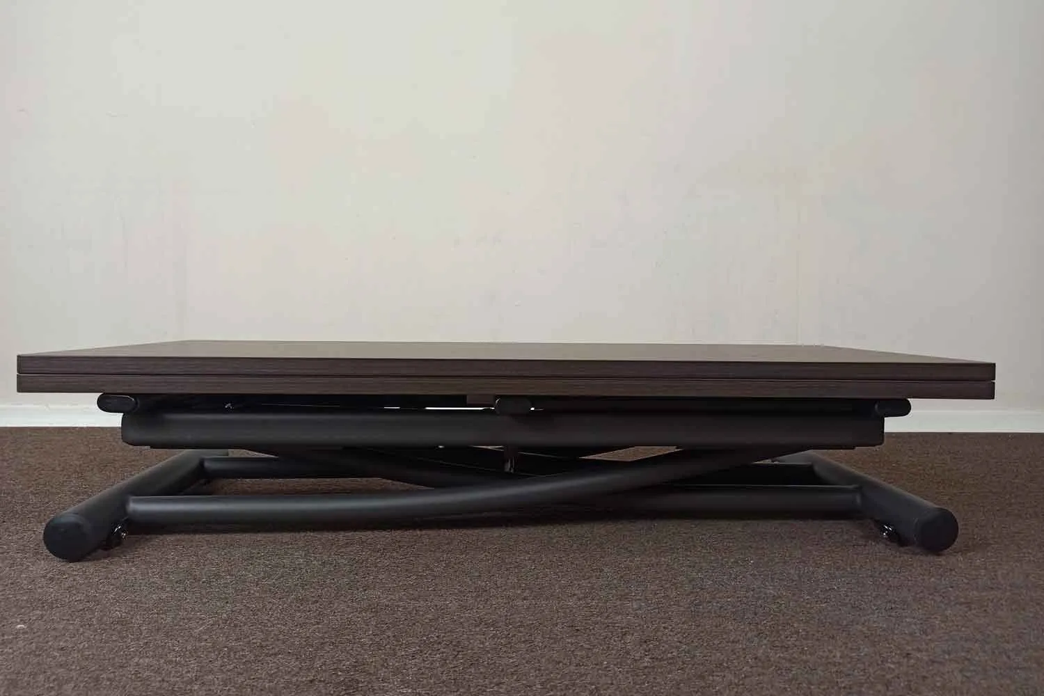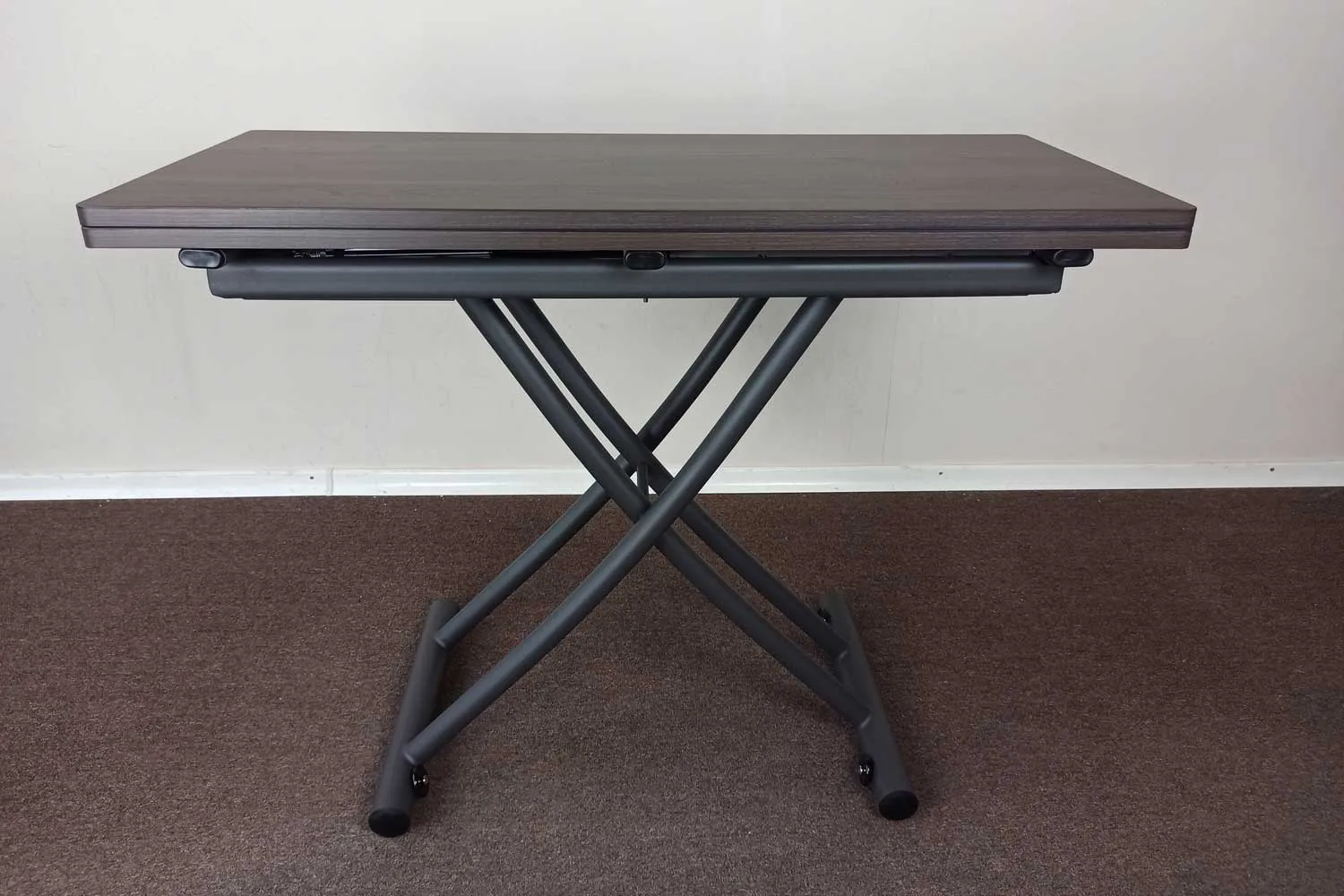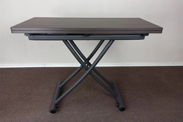 Стол-трансформер B2495 с механизмом регулировки высоты "газлифт" (легкое и простое изменение высоты). Дополнительно стол имеет два комплекта роликов. Одни используются для перемещения по комнате (2 ролика и 2 пластиковых подпятника на нижней стороне ножки-трубы). Вторые 4 ролика на внутренней стороне ножек служат для закатывания стола, сложенного на минимальную высоту под кровать или диван.