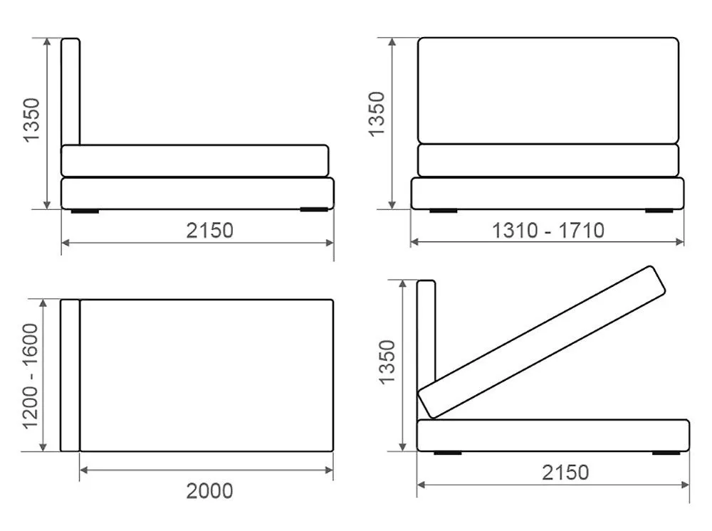 В стандарте тахта изготавливается в следующих размерах (спальное место):