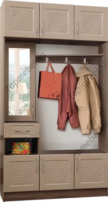 Компактна, но вместительная прихожая имеет красивый дизайн. Мебель отличается функциональностью, содержит все необходимое для комфортного использования, поместит необходимые вещи и различные мелочи. Мебель идеально подойдет в прихожую, поможет правильно организовать пространство. Можно приобрести отдельно или в составе модульной прихожей Вега. Стоимость прихожей Вега-3 в цвете Рельеф пастель - 9 950 руб.