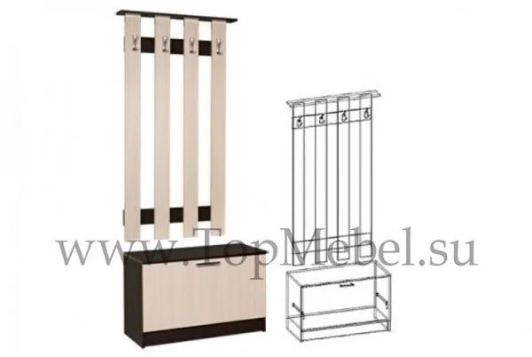 Модуль вешалка с тумбой (прихожая Машенька) венге / дуб молочный.