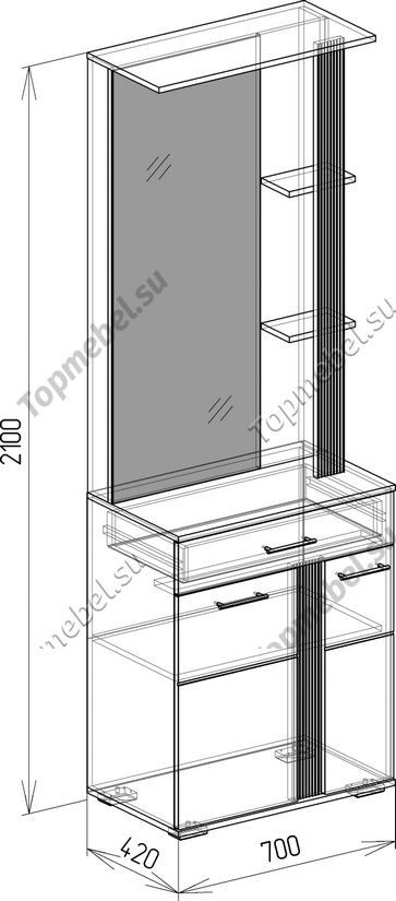 Комбинированное зеркало красивого дизайна идеально подойдет в прихожую. Мебель отличается функциональностью, содержит все необходимое для комфортного использования, поместит необходимые вещи и различные мелочи. Можно приобрести отдельно или в составе модульной прихожей Стелла. Стоимость зеркала в цвете Пастель мокко - 7 400 руб.